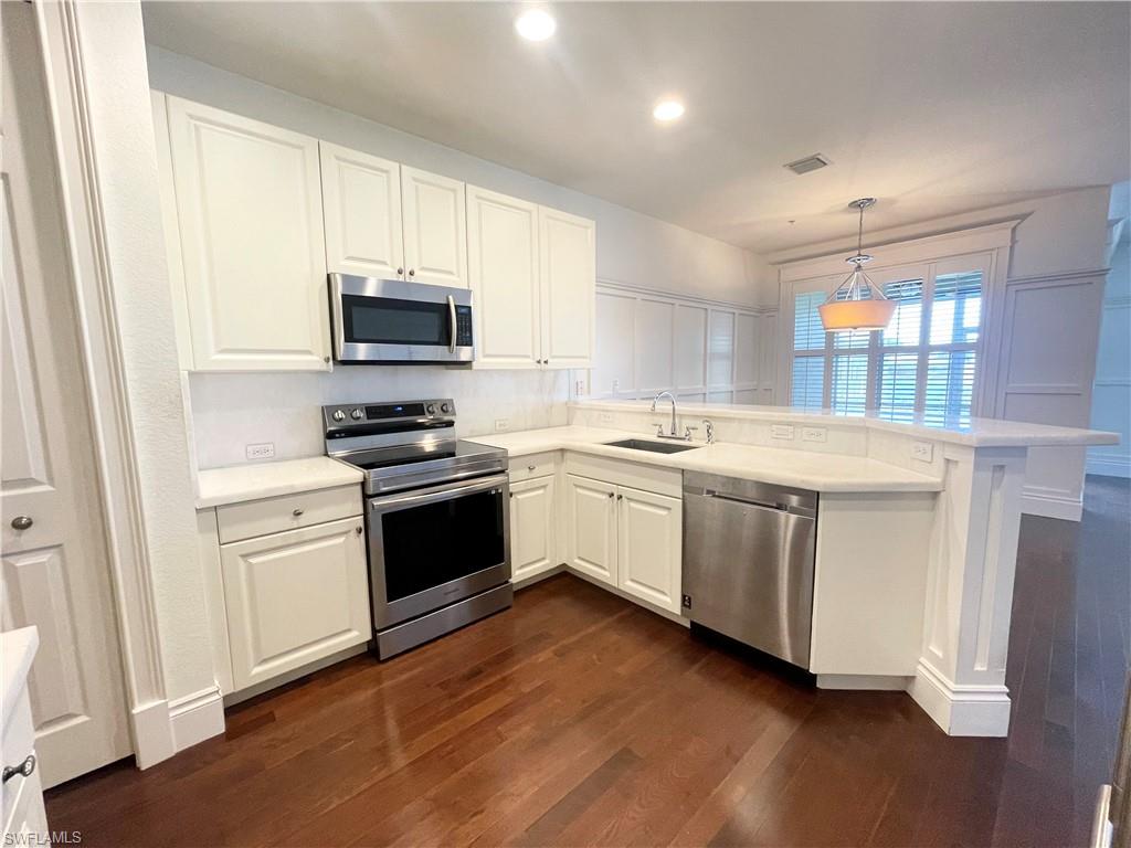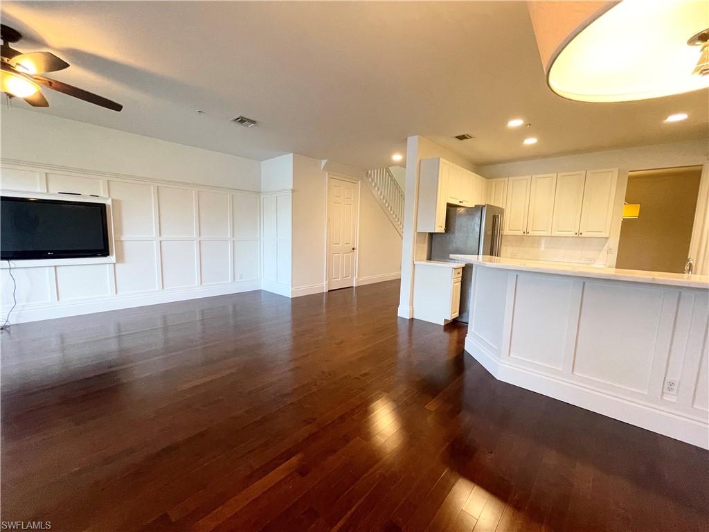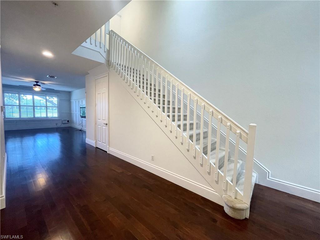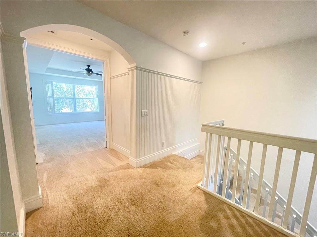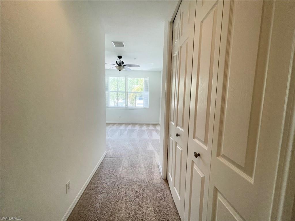 Now offered is a well cared for Townhome, 3 bedrooms, 2.5 bathrooms located in North Naples with easy access to shopping, Dining, schools and travelling. Low Fees, and move-in ready. The open style Kitchen has been updated with a newer refridgerator and Stove, and Quartz countertops. Flooring is wood throughout on first floor, Expresso colored and white Plantation shutters throughout this home. Garage is oversize, 2 car. Driveway can also park 2 cars as well. There is a New Water heater, (October, 2025). Living quarters are upstairs, along with a Loft/Multi-purpose area, and laundry room. The Primary BR is large with good Closet space and a accomadating Primary bathroom with Large soaking Tub plus Shower and door on the water closet all with a nice window, light and bright. The other two bedrooms, Guest Bathroom and Laundry Room are synomous in size. Pets are acceptable, but limited to 1 pet, 40 lbs. Mariposa is known for its large square footage. Come and see for yourself!