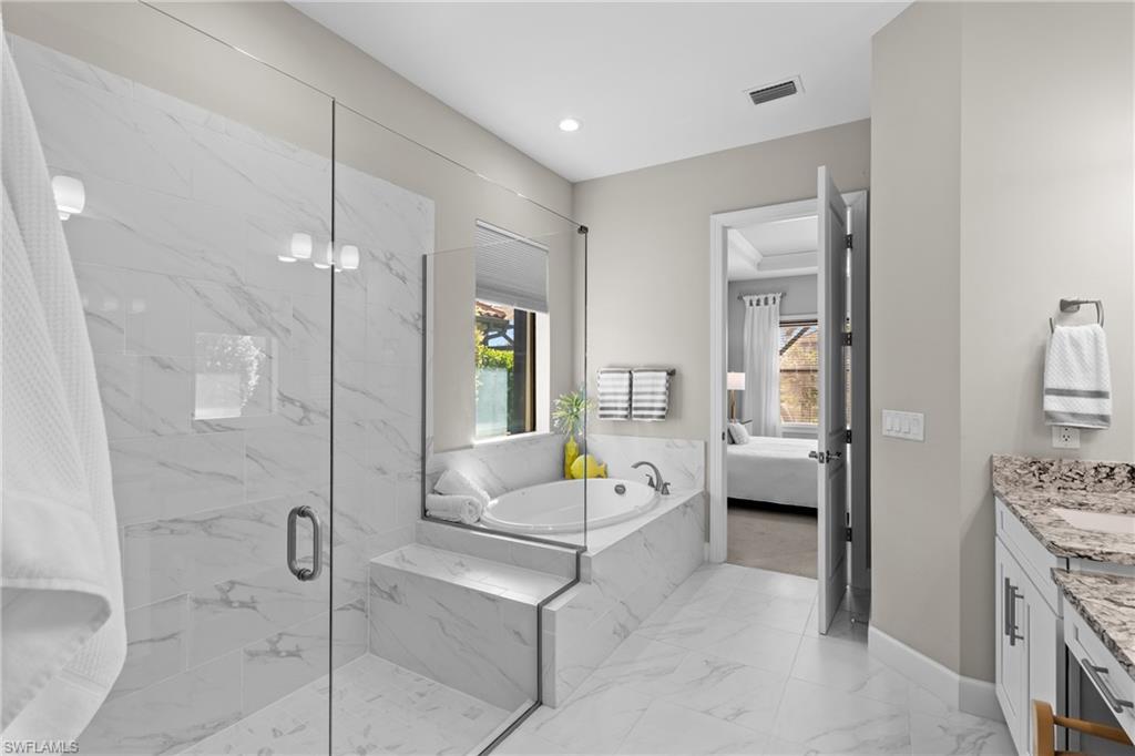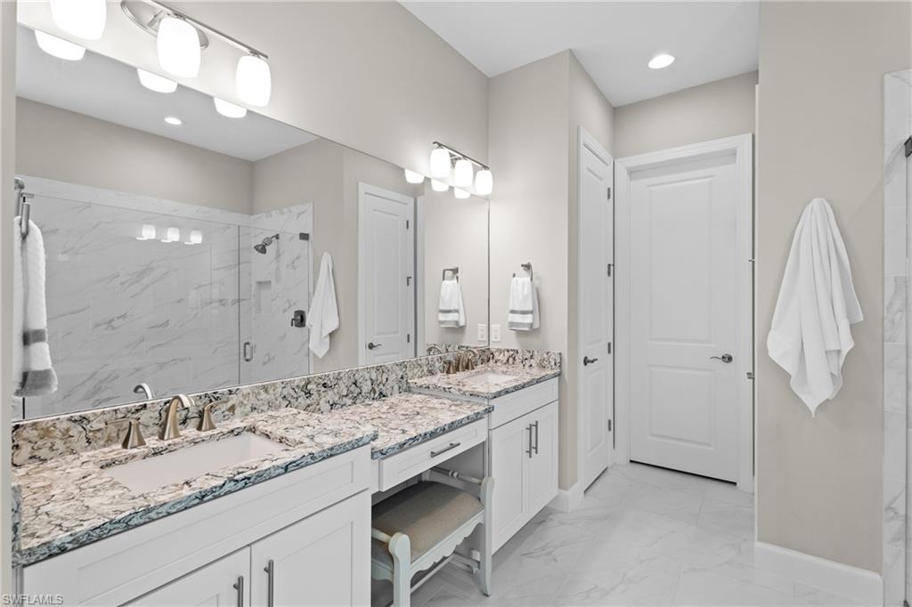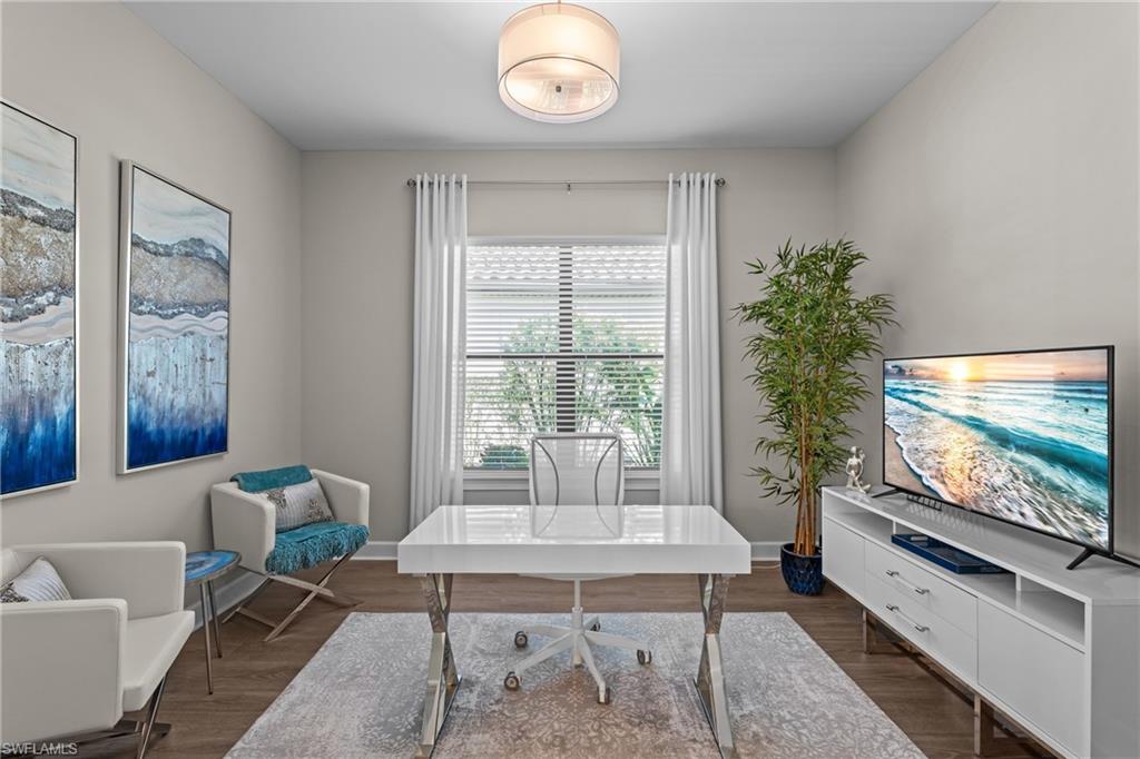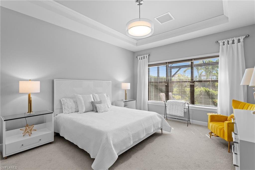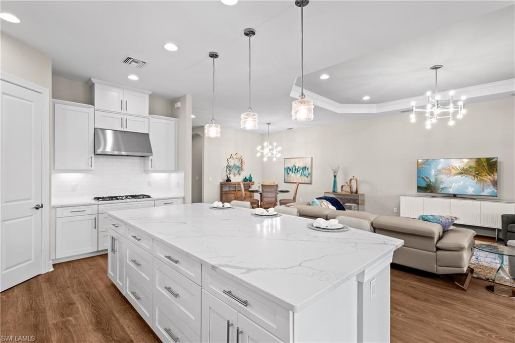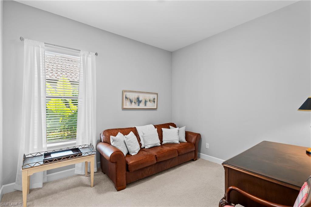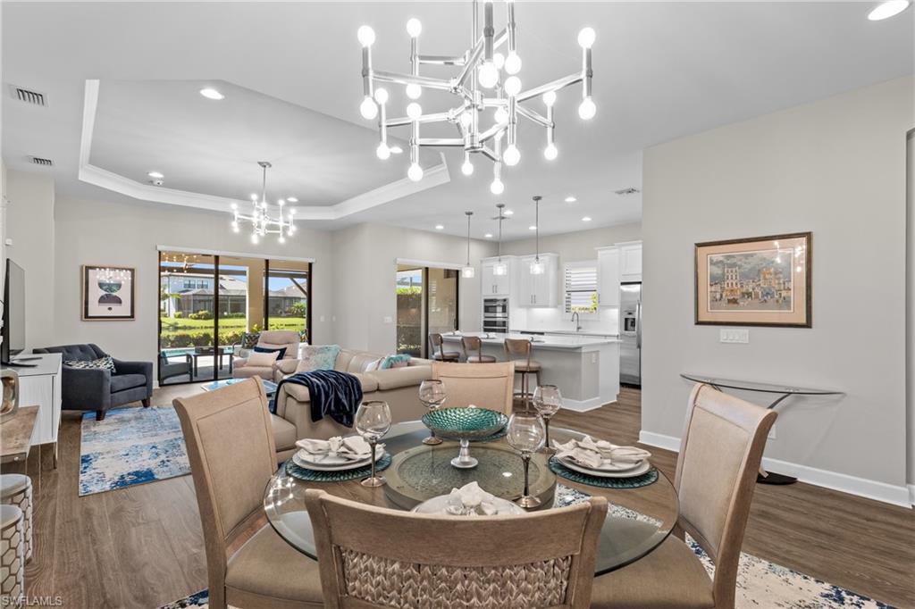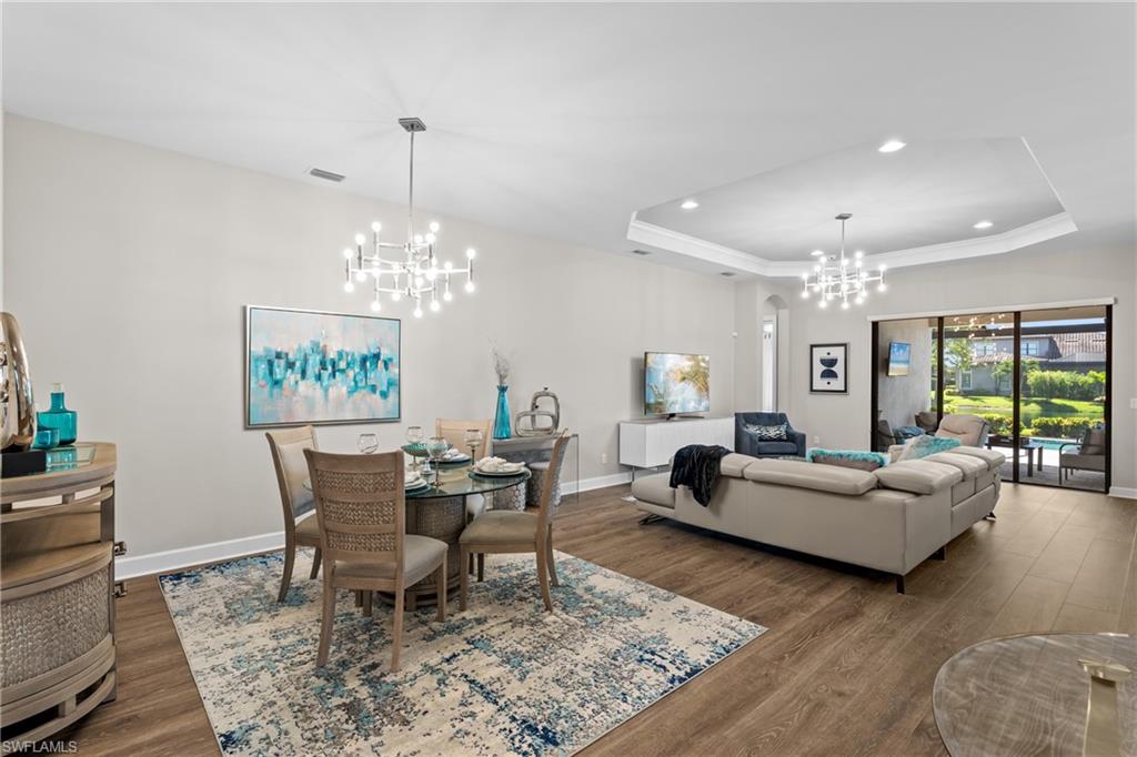 LIVE A VACATION LIFESTYLE IN ESPLANADE! FULL GOLF MEMBERSHIP INCLUDED! Built in 2019, this “Lazio” model offers a perfect mix of luxury, comfort, and relaxation with its lakefront setting and SOUTHERN rear exposure, which make this home light and bright. The layout, with 3 bedrooms, a den, and 3 full bathrooms has been upgraded with high-end features like the GE appliance package (including GAS cooktop, wall oven, and built-in wall convection microwave), beautiful quartz countertops throughout the kitchen & baths, luxury laminate floors throughout the common areas & den, upgraded sculpted carpet in the bedrooms, and more. The spacious open great room flows out to an extended covered lanai through two sets of sliding glass doors, with dedicated outdoor living and dining areas (pre plumbed for an outdoor kitchen with gas, water, and electric)—ideal for entertaining. The GAS and SOLAR heated saltwater pool with two water features and picture window screen cage framing wide and long lake views, making this space both relaxing and ideal for social gatherings. The primary suite offers a spacious bedroom with three windows overlooking pool & lake, luxurious bath with soaking tub and walk-in shower with frameless glass shower enclosure, and large walk-in closet. There are also many added features such as a WHOLE HOUSE GENERATOR, ELECTRIC MOTORIZED ROLL DOWN HURRICANE SCREENS ON THE LANAI, roll down and accordion style hurricane shutters on all windows, three tray ceilings, enhanced landscaping, upgraded Voss bathroom/shower fixtures, and more! The EXTENDED AIR CONDITIONED GARAGE (24’X20’) with epoxied floor and the large laundry room with cabinetry only add to the home's convenience. Esplanade Golf & Country Club of North Naples offers a true “Lifestyle Community” with world-class amenities, including a resort pool with cabanas and the popular “Bahama Bar,” tennis, pickleball, bocce, a 14-mile network of bike/walking trails, and an 18-hole private golf course. The impressive 15,000 Sq Ft clubhouse features a restaurant, bar, wine-tasting room, wine lockers, and a Starbucks-style café. Best of all, the property’s landscaping, irrigation, golf membership, and all community amenities are covered under a quarterly fee of just $3,412—no additional fees or memberships required! Don't miss your opportunity to own this exceptional home in one of Naples’ most sought-after communities. Schedule your tour of this stunning home and Esplanade Golf & Country Club today!
