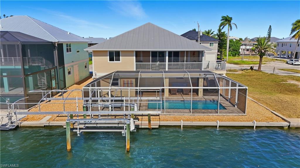 Gorgeous Coastal Canal Home with Pool & Beach Access! Welcome to your own slice of paradise on the coveted Flamingo Street — where coastal charm meets effortless comfort. This beautifully designed 3-bedroom, 2-bath canal-front home built by Woodland Homes offers the perfect blend of relaxation, recreation, and refined living. Step inside to discover a spacious split-bedroom floor plan featuring bright, open living areas and seamless indoor-outdoor flow. The sparkling pool and screened-in lanai create a private retreat ideal for entertaining or simply soaking in the Florida sunshine. A single balcony overlooks the tranquil canal, offering captivating canal and partial bay views that make every moment feel like a getaway. Boating enthusiasts will love the 10,000-lb boat lift and deep, wide canal providing swift Gulf and Bay access, while beach lovers can stroll to the direct beach access just at the corner! The home sits on a spacious parcel with low-maintenance tropical landscaping, offering beauty and ease of ownership. Enjoy ample parking in the oversized garage with bonus space for storage or hobbies. Whether you’re seeking a personal island retreat or an exceptional investment opportunity on a weekly rental street, this property delivers both lifestyle and income potential! Conveniently located near shopping, dining, bars, and the marina, this home is truly a beach and boater’s dream — a place where every day feels like vacation. Make this extraordinary coastal escape yours and turn your island dream into reality!