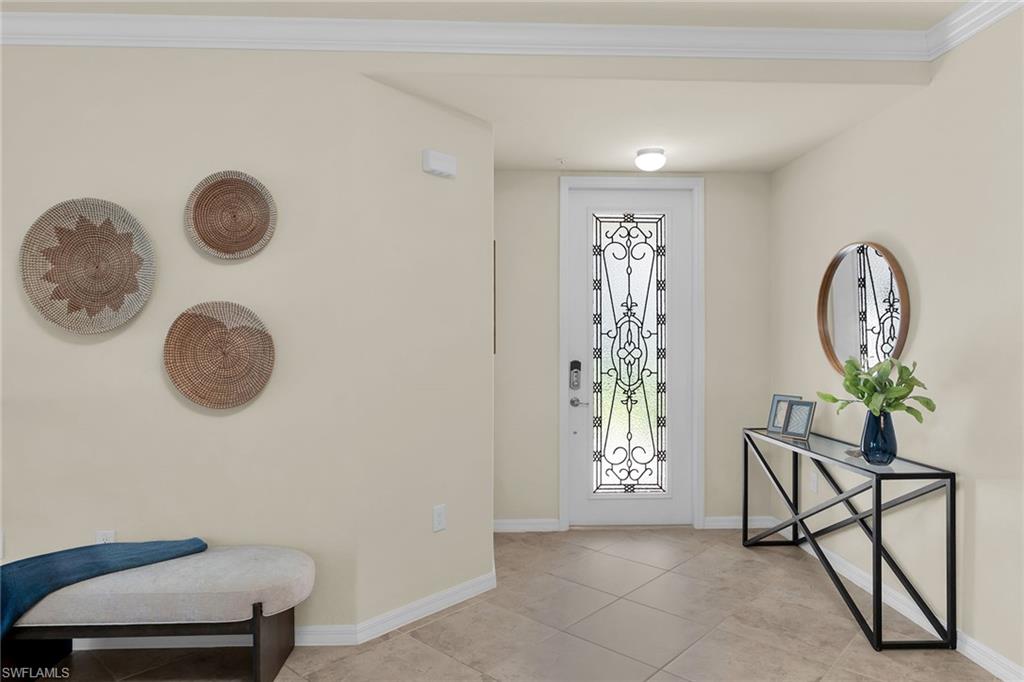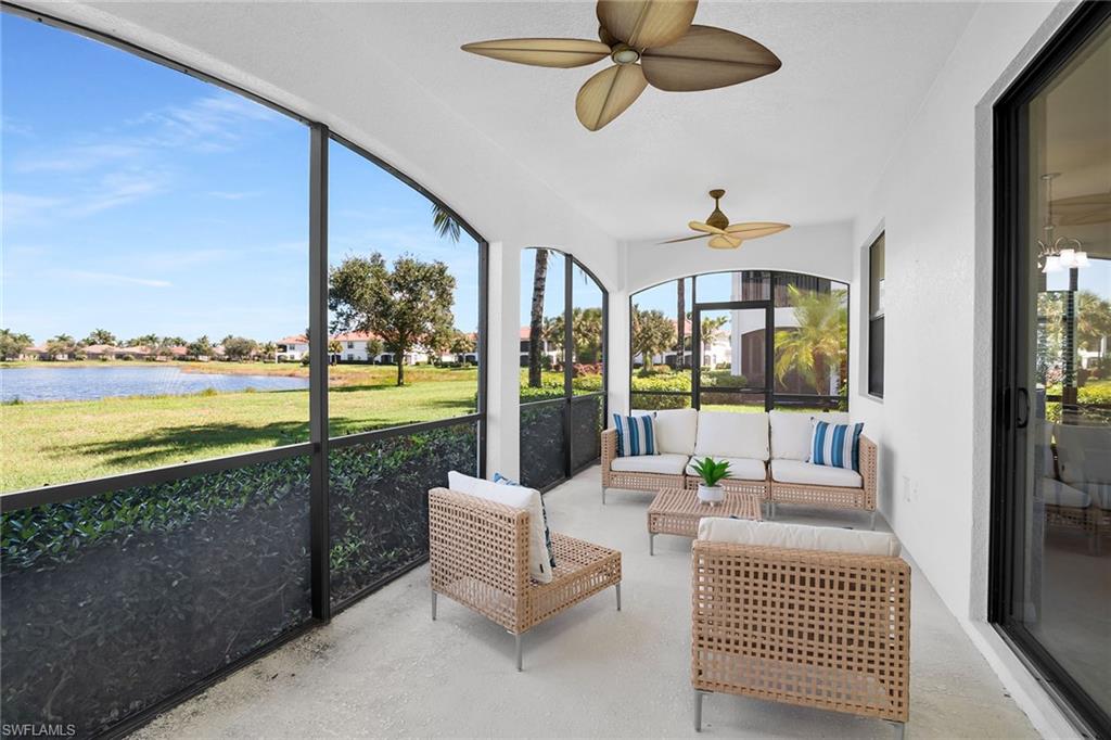 In the Village of Sonoma, enjoy a first-floor end-unit coach home with beautiful lake views in Sonoma Village. This three-bedroom residence is elegant and comfortable. The exterior includes a classic tile roof, impact doors and impact windows throughout, lush landscaping and a brick paver driveway leading to the two-car garage. Inside features include recessed lighting, crown molding, blinds and tile flooring on the diagonal in the living areas. The kitchen is equipped with stainless gas cooking appliances, granite countertops, a tile backsplash, pantry, breakfast bar and a dining area. The formal dining area and the spacious living room. The owner’s suite offers tranquil lake views, direct access to the lanai, two walk-in closets and an en-suite bath featuring a dual sink vanity, linen closet, deep soaking tub and a walk-in shower. The two guest bedrooms are in a separate and private area of the condominium. Additional features include a tankless water heater and extra storage closets. The living area overlooks and opens into the covered and oversized screened-in lanai, making it a great area to relax or entertain. Capital CDD paid in full. A life of luxury is ensured in this residence, enhanced by the 54,000-square-foot club and spa, full-service spa, fitness center complete with personal trainers and fitness classes, three swimming pools, championship golf courses, three bocce courts, and six tennis courts and 10 pickleball courts with competitive teams. Fiddler's Creek is close to Marco Island Executive Airport, beaches, shopping, restaurants, boating and easy access to Naples 5th Avenue.