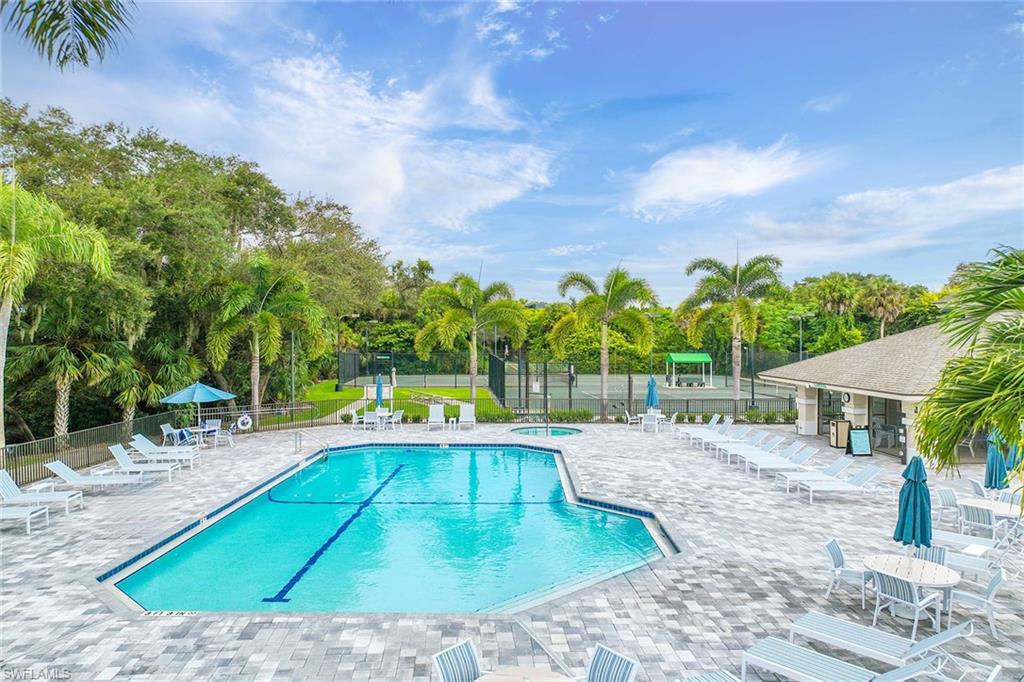 Beautifully appointed and ideally located, this two-bedroom, two-bath villa is in the sought-after golf community of Country Creek. The open-concept design seamlessly connects the kitchen, dining and living areas ideal for everyday living and entertaining. Enjoy two screened lanais, one in front and one in back, offering multiple outdoor spaces for relaxing or entertaining. The primary suite opens to the front lanai, while the living room extends to the rear lanai, creating a bright and inviting flow throughout. Additional features include an attached one-car garage for added convenience. Country Creek offers a vibrant resort-style lifestyle with bundled golf on a Gordon Lewis-designed 18-hole executive course. Community amenities include five tennis courts, a fitness center, bocce ball, five swimming pools, and miles of scenic recreational and biking paths. Residents also enjoy an on-site restaurant and bar with a patio overlooking the golf course. Ideally near premier shopping and dining at Coconut Point Mall and Miromar Outlets, Florida Gulf Coast University, Southwest Florida International Airport and pristine beaches of Southwest Florida.
