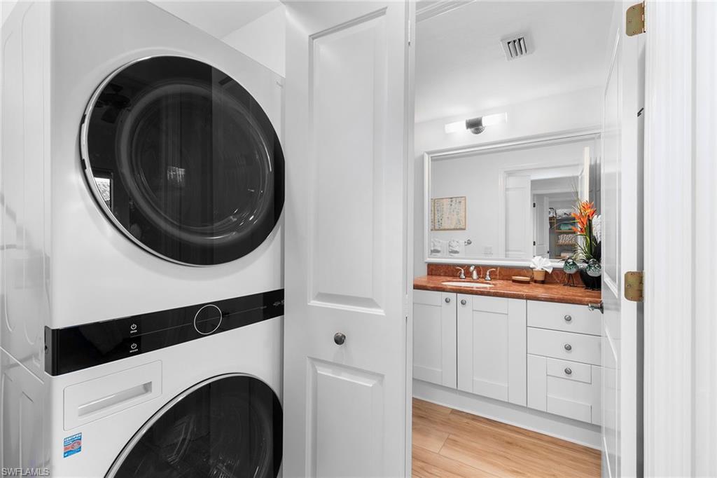 Experience resort-style luxury in the heart of Naples Bay Resort! This beautifully appointed two-bedroom, two-bath residence offers a blend of comfort, style and investment potential. Enjoy exclusive amenities including a full-service spa, state-of-the-art fitness center, tennis, lazy river, lap pool and poolside bar, all just minutes from Fifth Avenue’s dining, shopping and Gulf beaches. Inside, you’ll find custom flooring, a chef-inspired kitchen with island and a private screened lanai for relaxing evenings. A custom-built Murphy bed increases sleeping capacity to six, ideal for guests or rental flexibility. Offered fully furnished and turnkey, this property also includes rental revenue booked in 2026. Whether for personal use or as potential income producer, this home defines Naples resort living at its best.