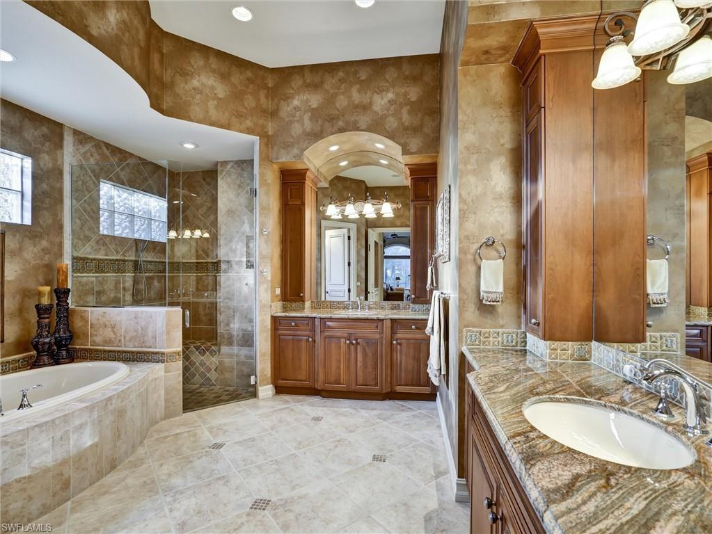 This exquisite, fully furnished home blends timeless sophistication with everyday comfort. From the moment you step inside, you’ll be greeted by soaring ceilings, custom details, and an inviting open flow. The living room features a beautiful stone fireplace and a sleek wet bar—perfect for entertaining. A 500+ bottle, temperature-controlled wine room elevates every gathering. The gourmet kitchen features a classic stone backsplash, a designer hood, and ample storage. Two ensuite guest rooms and a private owner’s suite provide space and serenity. The main suite includes a luxurious bath, vanity, dressing area, and three closets. Outside, the expansive lakefront lanai sets the stage for relaxed living, complete with multiple seating and dining areas, a fireplace, a summer kitchen, and a sparkling pool and spa framed by peaceful fountains. Immaculate, elegant, and move-in ready—this home is an exceptional opportunity to enjoy Naples living at its finest.