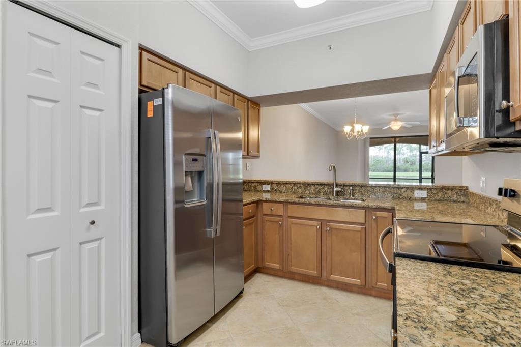 Discover the ultimate blend of elegance, leisure, and resort-style living in this beautifully maintained 2-bedroom, 2-bathroom Antonia model condo, located in the prestigious Treviso Bay community. Perfectly positioned to capture breathtaking lake views and all-day sunshine, this home offers 1,194 square feet of thoughtfully designed living space that’s move-in ready and waiting for you. Step inside and you’re greeted by a bright, open-concept layout with granite countertops, stainless steel appliances, and tile flooring throughout. The spacious primary suite is a true retreat, featuring two large walk-in closets, a luxurious ensuite bath with a walk-in shower, and private lanai access where you can unwind while overlooking the peaceful water. As a full golf member of Treviso Bay, you’ll enjoy access to the community’s TPC/PGA championship golf course—an 18-hole masterpiece bordering the Rookery Bay National Estuary Reserve. Designed to be both delightfully challenging and undeniably beautiful, it’s every golfer’s paradise. Beyond golf, Treviso Bay is a world of amenities at your doorstep: two grand clubhouses, resort-style and lap pools, a fully equipped fitness center, aerobics studio, spa, tiki bar, tennis and pickleball courts, and multiple on-site dining options. Whether you’re seeking an active day or a peaceful retreat, this community offers it all. Located just minutes from Naples’ famous 5th Avenue, enjoy world-class restaurants, shopping, and entertainment, or spend your days soaking up the sun on the sugar-white Gulf beaches. This home isn’t just a place to live, it’s a lifestyle to fall in love with. Welcome home to Treviso Bay, where every day feels like a vacation.