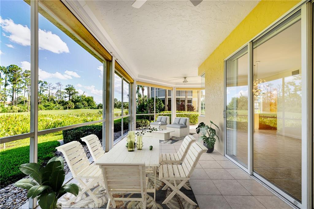 Welcome to effortless resort living at Avalon in Grandezza Golf & Country Club! This stunning first-floor coach home offers the perfect blend of comfort, style, and the Florida lifestyle you’ve been dreaming of. With three bedrooms, two and a half baths, and an attached two-car garage, this residence feels open and inviting from the moment you step inside. Expansive golf course views draw you in, with a large wraparound corner lanai—over 400 square feet of covered outdoor living space—overlooking the 12th fairway. It’s the perfect place to start your day with a quiet cup of coffee as the sun rises over the greens, watch golfers tee off, or unwind in the evening hosting a happy hour for friends as the sky softens into pastel hues. The spacious kitchen is both functional and elegant, featuring custom cabinetry by Cornerstone, quartz countertops, stainless steel appliances, built-in induction cooktop with lighted hood, wall oven and microwave, under-cabinet lighting, stylish tile backsplash, and a built-in wine bar with cooler. The open-concept layout flows easily into the living and dining areas, creating an ideal space for entertaining. The primary suite offers a luxurious retreat with dual custom vanities, backlit mirrors, a glass walk-in shower, separate water closet, and two large walk-in closets. For added convenience and peace of mind, Storm Smart electric hurricane shutters provide full protection year-round. Avalon residents enjoy their own private clubhouse and pool, while Grandezza takes resort-style living to the next level with its championship 18-hole golf course, six Har-Tru tennis courts, fitness center, resort-style pool with cabana bar and grill, and multiple dining venues ranging from casual to fine dining—all within a beautifully maintained gated community. Golf memberships are available but not required. The HOA takes care of nearly everything—basic cable, internet, water, sewer, trash, landscaping, building insurance - making this a low-maintenance luxury lifestyle. Ideally located near Miromar Outlets, Hertz Arena, Gulf Coast Town Center, RSW Airport, and just a short drive to the beaches of Bonita Springs and Naples, this home truly puts you in the heart of it all. Schedule your private tour today and discover why life at Grandezza is the perfect balance of sophistication, convenience, and fun in the sun.