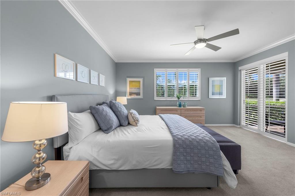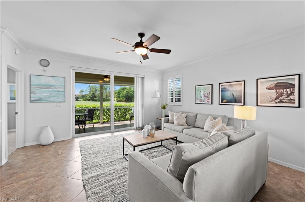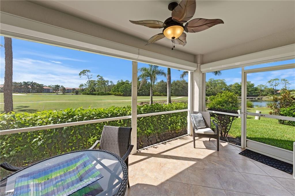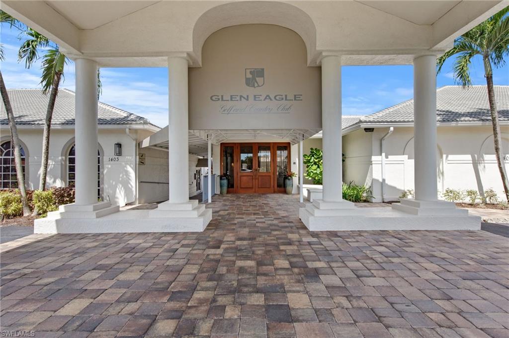 Your Turnkey Naples Luxury Lifestyle Awaits—Full Golf Membership Included! Step immediately into the coveted Glen Eagle lifestyle. This is more than a home; it's your instant entry into Southwest Florida's most desirable golf community. Forget waiting lists and application fees—a FULL GOLF MEMBERSHIP is included, offering immediate access to the par-70 championship course. Unparalleled Views and Peace of Mind. This exceptionally maintained, move-in-ready, first-floor end unit is a sanctuary of light and privacy, boasting extra windows and the community's most desirable panorama. Imagine unwinding on your screened lanai with expansive, serene 180-degree sunset views that stretch unobstructed across the Glen Eagle Golf Course. Enjoy absolute peace of mind with full impact glass throughout* and electric shutters on the lanai. Effortlessly protect your home and leave your outdoor furniture in place all year long—a convenience only truly appreciated here in Florida. Exquisite Finishes and Essential Updates Offered Turnkey furnished, simply bring your suitcase and start living your dream. The kitchen is a chef's delight, featuring sleek granite counters and top-tier Samsung and Bosch stainless steel appliances. Stylish plantation shutters and crown molding complement a suite of essential, newer mechanicals (A/C 2021, Hot Water Heater 2018, Garage door 2024), ensuring worry-free living from day one. Every Day is a Vacation. As an owner, you gain full access to a host of world-class amenities. Sharpen your game on the championship 18-hole golf course, gather with neighbors on the pickleball, tennis, and bocce courts, or work out in the modern fitness center. Your social life awaits at the Clubhouse, which features fine dining at the main Restaurant, a full-service bar, and the popular "Divot Café" for casual bites. Plus, modern convenience is assured with Fiber internet and basic cable included. Glen Eagle is a private gated community nestled in the Heart of Naples, located just minutes from the vibrant energy of Downtown Naples' fine dining, designer shopping, and the area's pristine Gulf beaches. Your immediate luxury golf lifestyle is here. Don't let this opportunity pass you by.