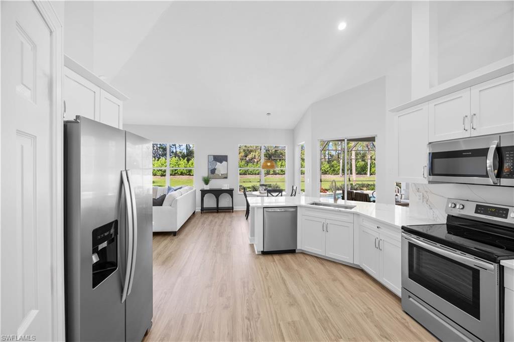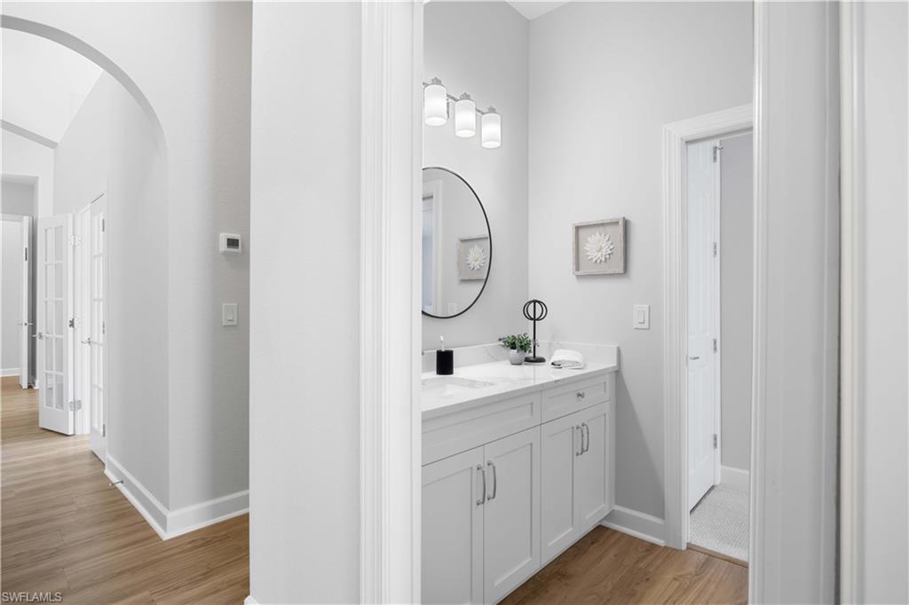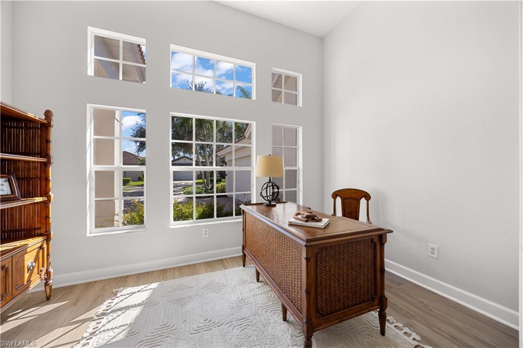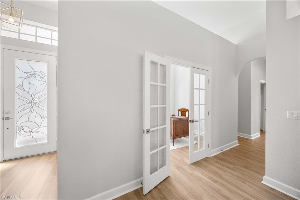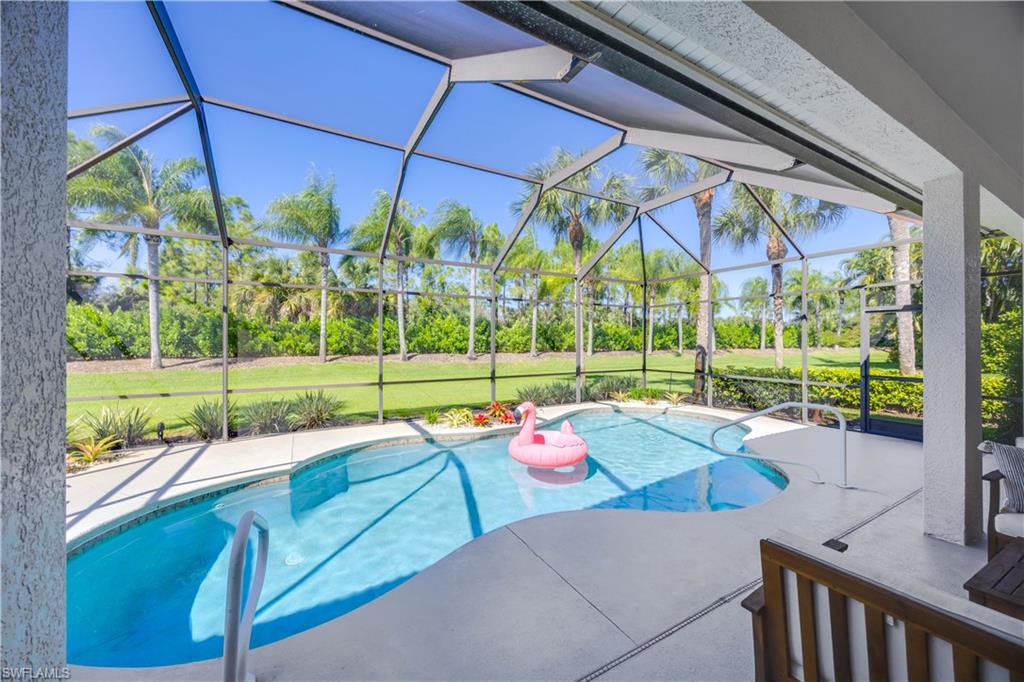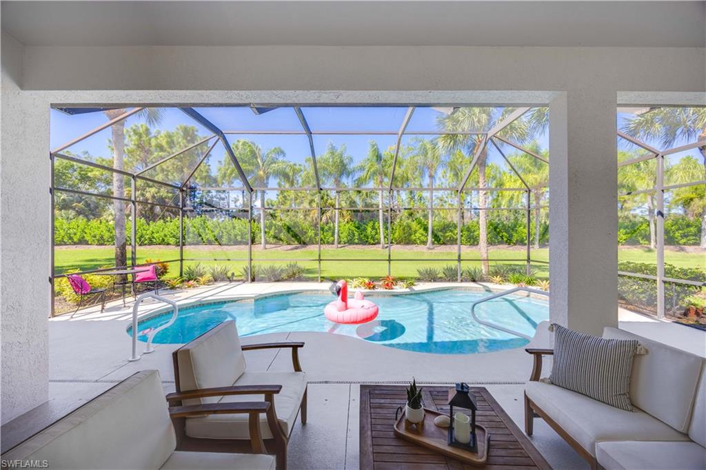 Welcome to your Naples DREAM HOME! Located in highly desirable, gated Mustang Island @ Lely Resort. Includes PLAYER'S CLUB membership! This home has been recently renovated top to bottom: floors, fresh paint, kitchen, carpet, garage, appliances, and bathrooms! Soaring ceilings throughout. Gourmet kitchen with modern quartz countertops and new appliances. Large living and entertaining space that flows seamlessly into your covered patio with pool and lush, tranquil backyard. Enjoy the sunshine, flowers, and birds as you enjoy your morning coffee or cool off with a swim. Large master bedroom with huge walk in closet, and elegant spa-like bathroom. Work from home in your bright, sunny office with double French doors and a front garden view. Two lovely guest bedrooms share a full size Jack-and-Jill bathroom. Laundry room features new washer/dryer with lots of cabinets for storage. Even your car will sleep in style in your spotless and freshly painted 2 car garage with new epoxy floor. No detail has been overlooked in this charming villa. Welcome home!