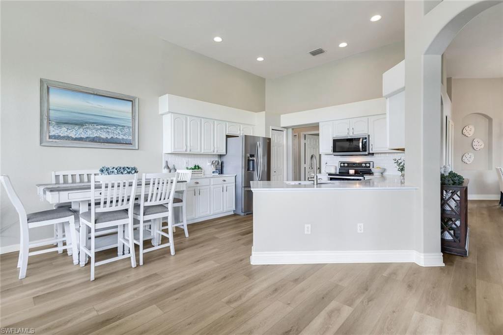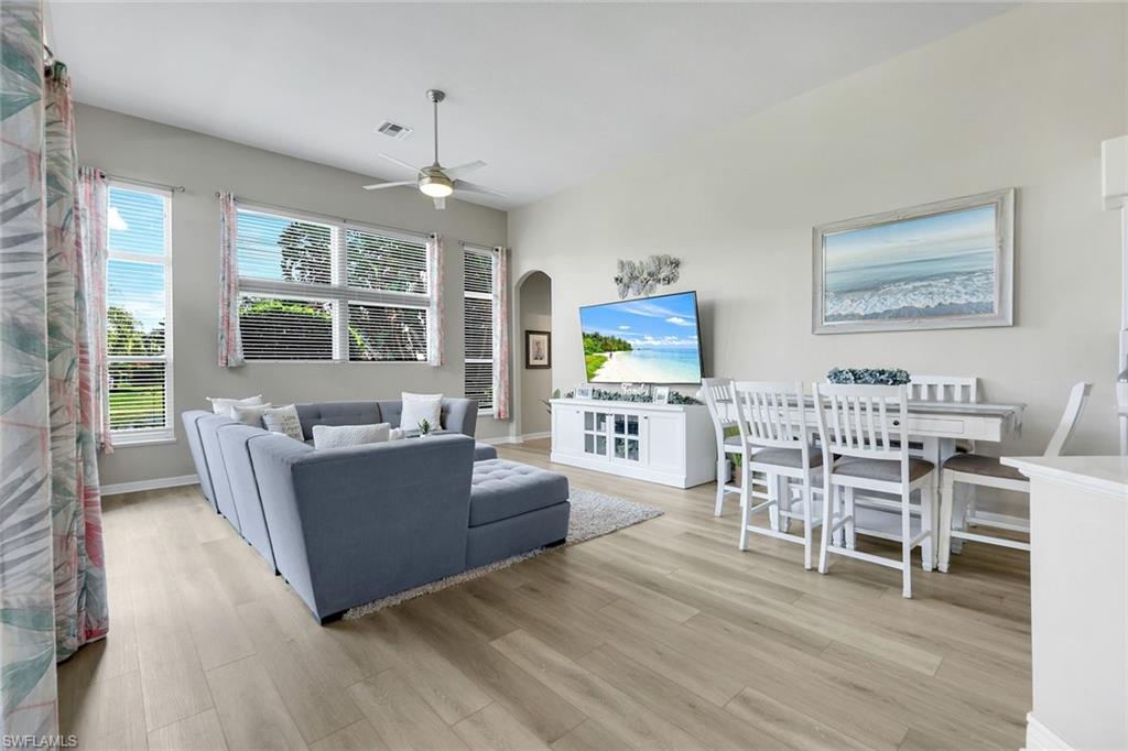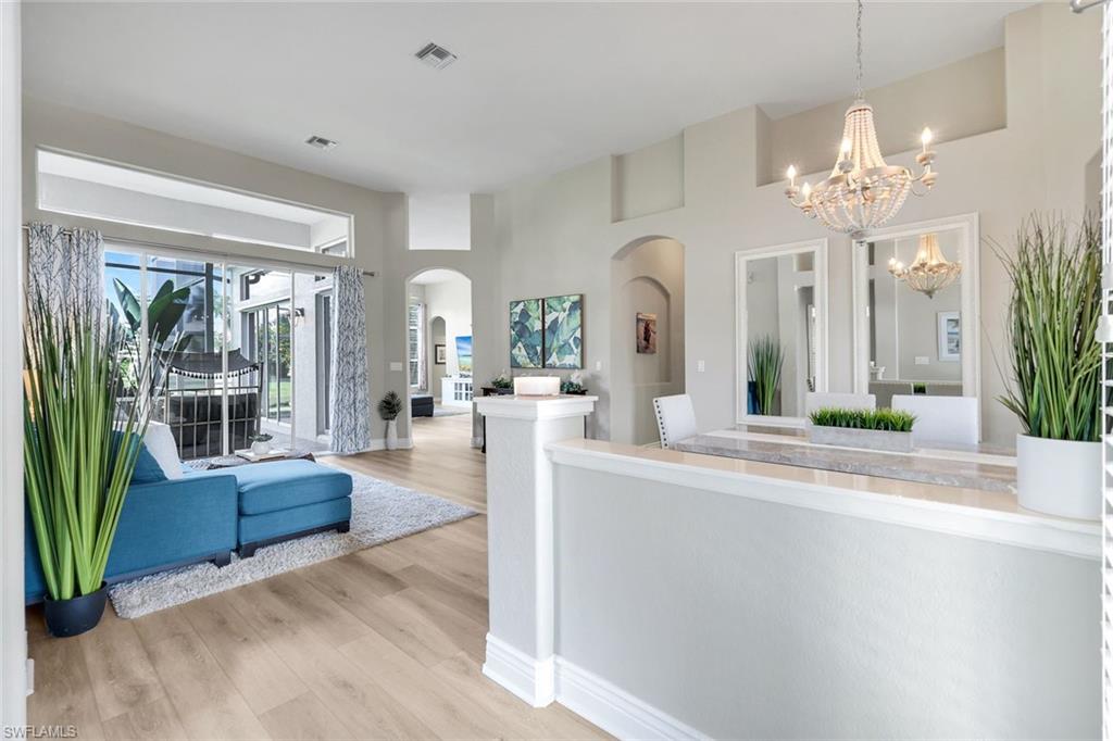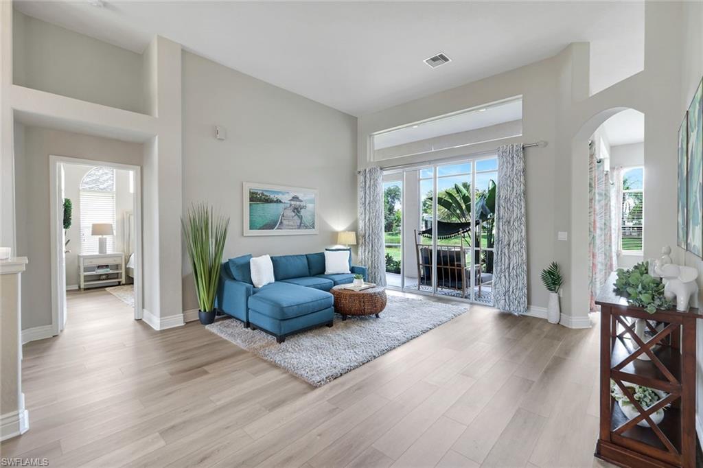 WOW! Beautifully updated, designed and move-in ready 4-bed, 3-bath lakefront home with a 3-car garage in the desirable gated community of Pebblebrooke Lakes in North Naples, FL. Updates include quartz counters in the bathrooms and kitchen, LVP floors throughout, All appliances only a few years old including new whole house Air Purifier UV system and freshly painted interior and exterior. The thoughtful floor plan includes two separate living areas—a formal living room and a spacious family room—plus a formal dining room, offering plenty of flexibility for entertaining or everyday living. Light, airy, and inviting, this home features ample windows, voluminous ceilings, generous-sized bedrooms, and abundant natural light throughout. It features that coveted Indoor / Outdoor Florida Living. The primary suite provides a large ensuite bath with dual vanities, a soaking tub, and a walk-in shower. Step through sliding glass doors to the screened lanai overlooking the lake, where you can unwind amid tranquil views. Pebblebrooke Lakes offers low HOA fees and resort-style amenities including a clubhouse, fitness center, pool with waterfall, tennis, pickleball, and basketball court. With tree-lined sidewalks perfect for outdoor activitiesand proximity to Publix, Founders Square, fine dining, shopping, and top-rated schools, this home combines comfort, convenience, and community charm.