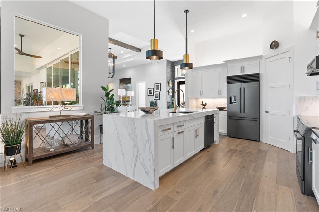 'NEWER CONSTRUCTION""MOVE IN BEFORE THE HOLIDAYS,WHAT A DEAL"" COMPLETED IN 2025.'WATER FRONT,' LONG WATER VEIWS,'GORGEOUS"MOVE-IN READY" NOW"!!!!OWN A PIECE OF THE GOLD-COAST,HUGE FABULOUS LOT"EXTRA GREAT VALUE", NO WAITING TO BUILD"!!!,QUICK and Direct Access, no bridges, Open water, COASTAL CHIC FLARE 'CASUAL- sophisticated, comfort'(New LUXURY Designer, Furnished plus ,accessories,avaible sold separately, ask listing agent,all high- End Stores' ) ,' LOT SZ. room for YOUR Boat, RV, Pickle ball court,play ground etc.'NEW- Dock installed ,NEW LIFT arriving SOON, IMPERIAL DOCK with fish station, water and electric!!! 3 car garage over sized, LOTS OF new ,STORAGE selves added, electric CAR plug in, ''Beautifully, appointed wood floors'',10 inch base ,designer kitchen, Bosch appliances, 4-inch Quartz center Ialand,2 water- falls, Cabinets-under lighting and Above, latest in colors,,brick walls , with,2-modern electric fireplaces, in GREAT- ROOM AND PRIMANY BEDROOM, wooden beams in great room,designer- lighting throughout,'12 foot sliding glass doors' spa like IN PRIMARY bath', Large walk-in closet in PRIMARY BEDROOM.""GREAT 2nd floor',1- bedroom and 1 large ensuite bedroom includes Great seating TV area for guests, open air Laini and private bath ..Large POOL and SPA Included outdoor kitchen for your fresh catch of the day AND extra outdoor patio in yard + grill.' !!!HURRICANE READY,HIGH ELEVATION, IMPACT WINDOWS AND DOORS.walk to shopping and dining, close to private MARCO Beach PRIVATE - members only, with restaurant included, short bike ride ...location location,'EZ show'!!!MUST SEE PHOTOS