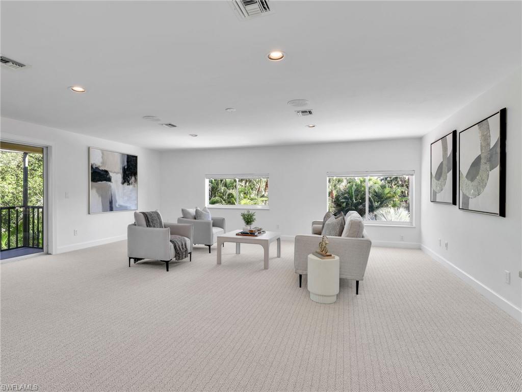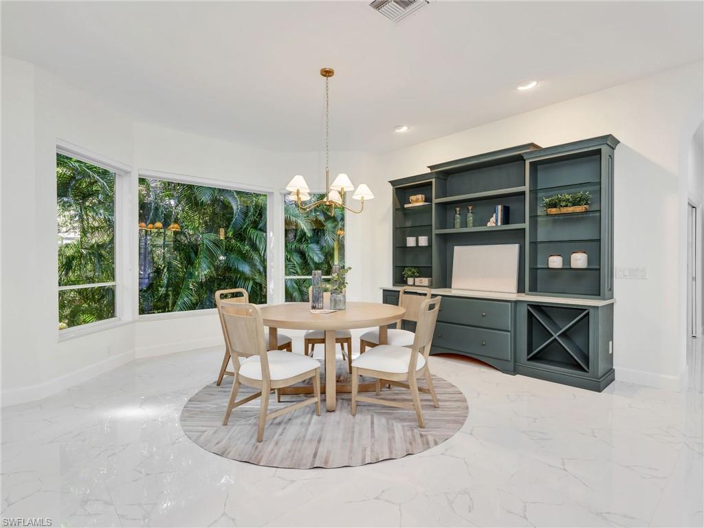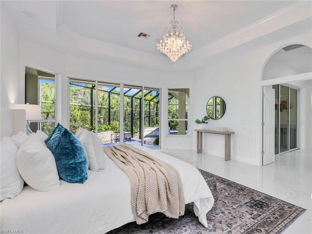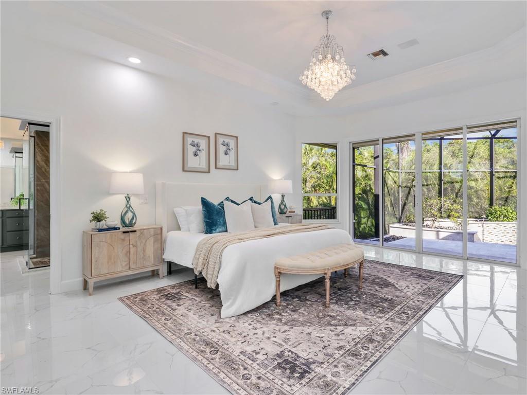 Welcome to Hidden Harbor, one of Bonita Bay’s most desirable enclaves, where luxury, nature, and lifestyle converge. This exclusive neighborhood of just 53 custom homes is situated along oak-lined streets, surrounded by lakes and preserves, offering unmatched privacy and tranquility. Residents enjoy a peaceful, park-like setting close to the Bonita Bay Marina, Backwater Jacks waterfront restaurant, and miles of walking and biking paths. Bonita Bay’s prime location places you minutes from Gulf beaches, Coconut Point Mall, fine dining, and RSW International Airport. Set on a rare one-acre preserve lot, this 4,551-sq-ft residence blends timeless elegance with modern comfort. A winding driveway leads to the .81-acre property with a spacious three-car garage and beautifully landscaped grounds. Inside, natural light fills open spaces designed for easy living and entertaining. The chef’s kitchen features a large island, double ovens, stainless steel appliances, a wine refrigerator, and abundant storage. Cooking is powered by propane gas, with an on-site tank that also supports a future generator. The home offers four bedrooms plus a den and four full baths. Upstairs, a bonus suite includes a living area, deck, bedroom, bath, beverage fridge, and plumbing for a compact kitchenette—perfect for guests. An air-conditioned storage room adds convenient climate-controlled space. The primary suite provides a private retreat with a spa-like bath, Jacuzzi tub, and walk-in shower and also has a private deck over looking a lake, great for romantic sunsets. The outdoor living area is a showpiece. The multi-level infinity pool features elegant sheer descent water features and luxurious marble decking. The exquisite lanai creates the perfect setting for relaxing or entertaining, surrounded by lush landscaping and preserve views. Renovated in 2016 and continually improved through 2025, updates include a new roof (2022), three HVAC systems (2020), three water heaters (2020–2024), updated pool equipment, marble-tile lanai, lighting, freshly painted interior, flooring, new upstairs carpeting, and a newly painted and sealed driveway for a crisp, clean look. Life in Bonita Bay offers something for everyone. Optional memberships at the Bonita Bay Club include access to five championship golf courses (three by Arthur Hills, two by Tom Fazio), a 20,000-sq-ft fitness and wellness center, tennis and pickleball complexes, a croquet lawn, spa, resort pools, and fine or casual dining. The private Beach Club on the Gulf offers shuttle service, lounges, umbrellas, and food service right on the sand. Boating enthusiasts can enjoy optional boat storage and dockage within the full-service marina with easy Gulf access. The community also offers parks, bocce courts, kayak launches, and abundant wildlife viewing. Experience the best of Bonita Bay living—elegance, privacy, and resort amenities all in one exceptional Hidden Harbor home.