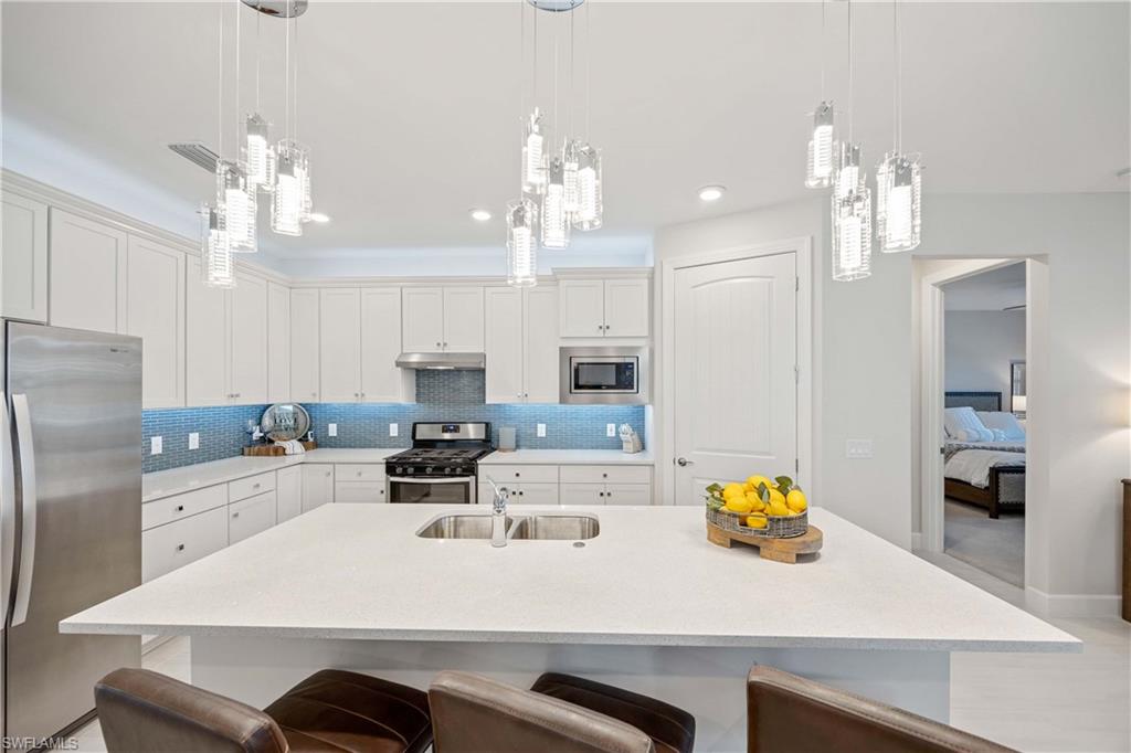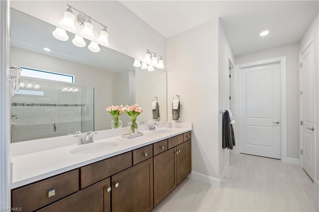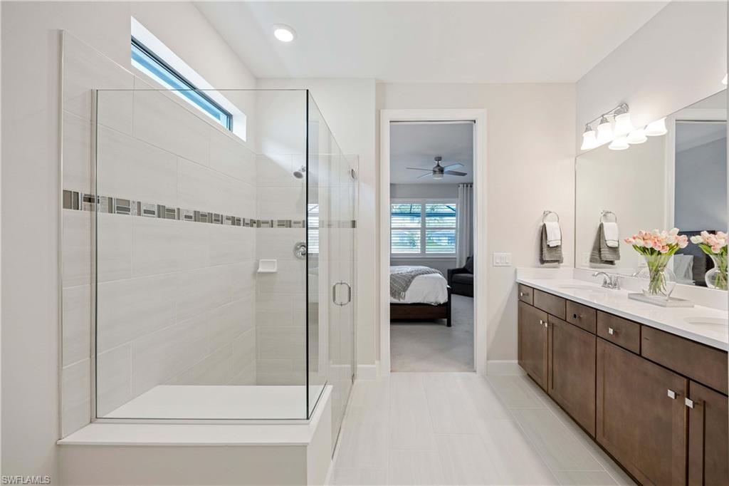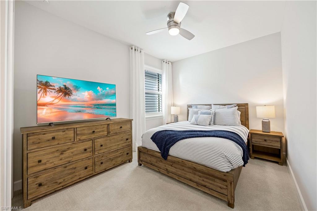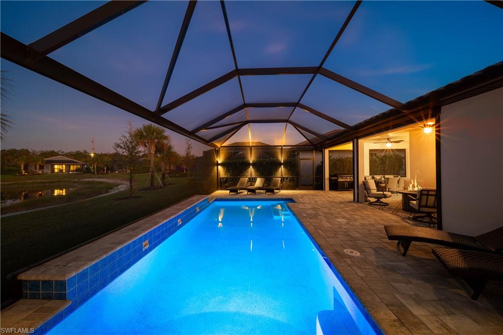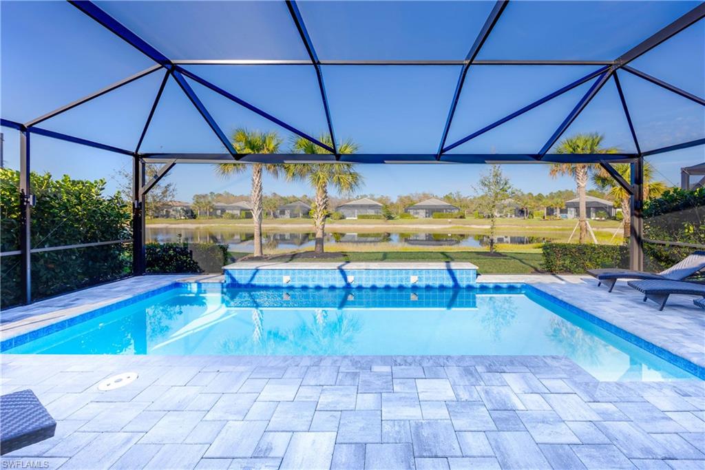 Perfection is the only way to describe this home! It shows like a model as it has been rarely lived in since built barely three years ago. Welcome to the desirable Pulte/DiVosta Mystique Model located in the popular amenity rich community of Winding Cypress. This waterfront property sits on a dead-end cul-de-sac and is loaded with owner and builder upgrades. It's impeccably decorated and furnished and could come turnkey providing the new owner with everything you'll ever need to begin living in paradise! The Mystique’s footprint, a 3 bed, 2 bath plus optional den offers the sought after open kitchen, great room, and dining area concept with split bedrooms to ensure comfort and privacy. All the bedrooms are large with the primary suite being expansive. This home's upgrades include a whole-house generator, a hurricane impact zero-corner sliding glass door that provides a spectacular indoor/outdoor living area combining an expansive great room to the under roof lanai dining and and separate sitting section. That's just part of the lighted lanai. There's an extended paver area for you to soak in the sun while you admire the custom pool with a soothing water feature. Looking out over the beautiful lake is made easy with the option "picture window" lanai screen. Electric StormSmart metal shutters enclose the lanai providing additional peace of mind, safety and security. Additional enhancements include a chef's kitchen layout with quartz counters, a natural gas cooktop and range, upgraded cabinets with above and under lighting, expansive island with an overhang to sit three, an upgraded backsplash and a large walk-in pantry. This home also boasts upgraded tile plank flooring, custom 8' doors throughout, high-end interior plantation shutters on all windows, an expanded laundry area with cabinets, counters, a utility sink, and extra storage. The 2 car garage has an insulated overhead door. Winding Cypress is optimally located just 15 minutes to Olde Naples, 10 minutes to both Marco Island and I75, and 30 minutes to RSW Airport. For this price point, the amenities at Winding Cypress are second to none. A resident's only full service restaurant, resort pool with spa that rivals a Las Vegas hotel, pickleball, tennis, and bocce courts, the best fitness center around, an vibrant community center with onsite management and Activities Director, a dog park, community garden, and a boardwalk nature trail are just a few of the things that make Winding Cypress so special. With only 766 single-family homes spread out over 1250 total acres that includes 850+ acres of spectacular preserve and lakes, enjoy the peace, serenity and beautiful wildlife that few communities are able to offer.