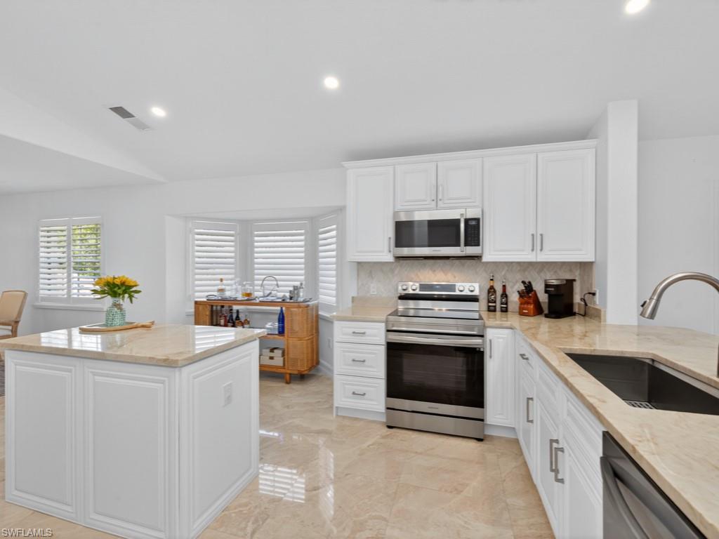 Magnificent completely remodeled in 2022 second floor unit located in the Saratoga community in Lely Resort. CURRENT MEMBERSHIP IN THE PLAYERS CLUB AND SPA AVAILABLE UPON PURCHASE. The Players Club and Spa is optional, current owners are members so membership can transfer to buyer at current membership fees. Upgrades include marble flooring custom wood staircase Taj Mahal quartzite countertops throughout kitchen/ bathrooms and laundry room. Unit has Elevator and new appliances, with two car garage with Epoxy coated floor. Community pool and hot tub.