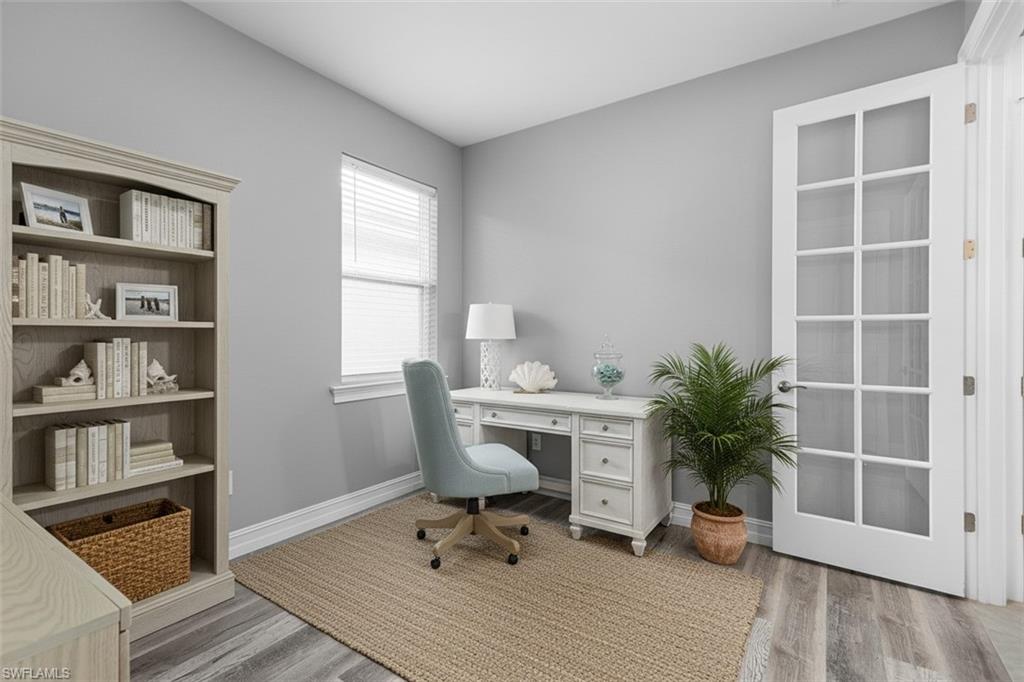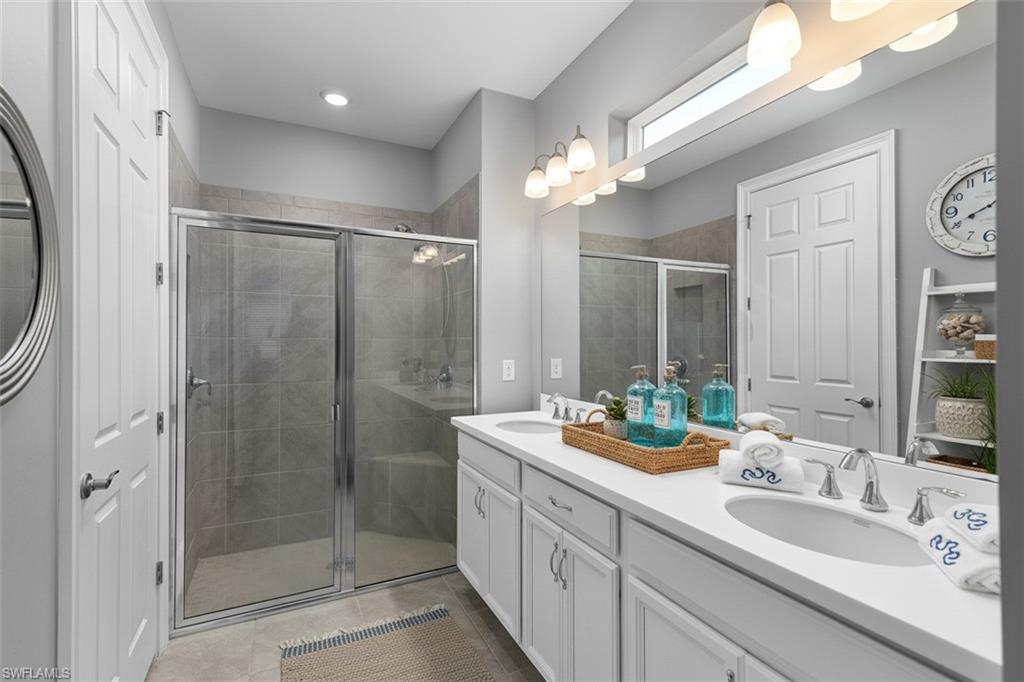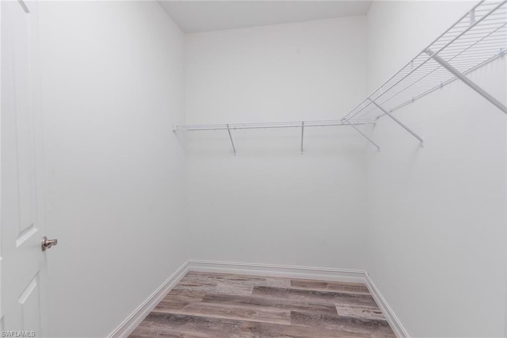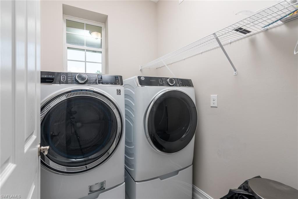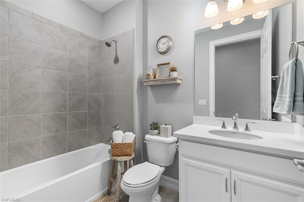 This Jennings floor plan in the heart of Bonita Springs offers wonderful balance of luxury and convenience at an attractive price point. The home greets you with a spacious foyer leading into an open- concept design that connects the gourmet kitchen to the main living spaces, perfect for both entertaining and daily living. Key features of the kitchen include state of the art appliances, a quartz countertop, and a large walk- in pantry. The owners suite serves as a personal retreat, with expansive windows for natural light and an en- suite bathroom with a modern walk in shower. The outdoor space continues the theme of relaxation and private back yard. Throughout the home LVT panel flooring is used with tile in the wet area, and ceiling fans are installed in each room for added comfort. Residents in this gated community enjoy low HOA fees and access to an array of resort-style amenities, including a walk-in pool, spa, clubhouse, and a sandy beach area. Sports facilities include pickleball and tennis courts, with bocce ball courts and bike paths for a more relaxed pace. Its location offers privacy and convenience, with close proximity to shopping, golf courses , I 75 and an International airport, making everyday feel like a vacation. Virtual staging has been used but the furnishings in the home do come with home. This home has been virtually staged. The furniture in the garage can go with the house if wanted.