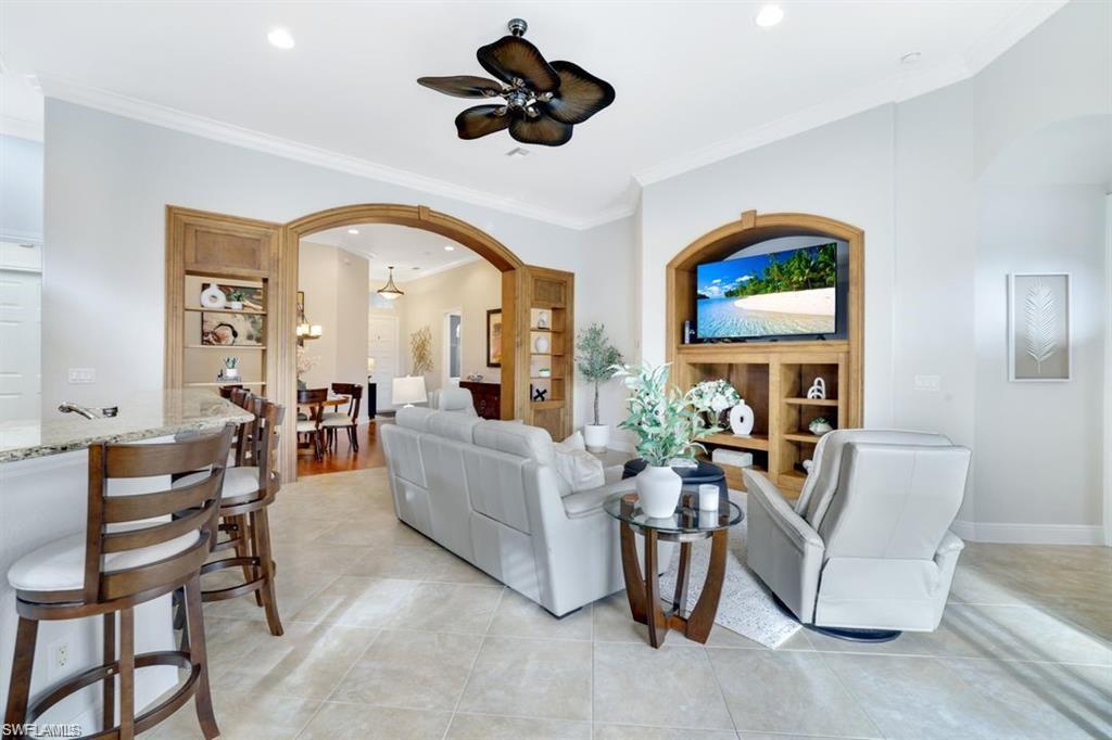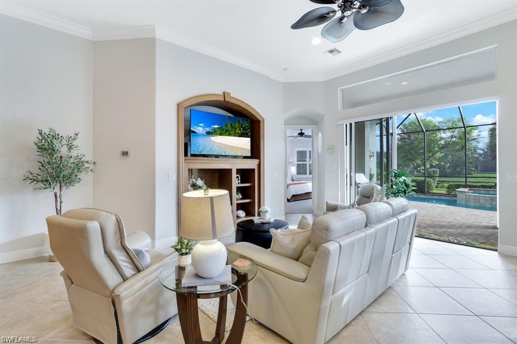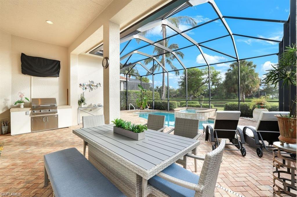 BEST VALUE IN FIDDLER’S CREEK! Over $250K in price improvements making this one of the most exceptional opportunities in this highly desirable resort-style community. Experience upscale living without the premium price tag in this beautifully furnished, professionally decorated, lakeside retreat. This elegant 3-bedroom, 2-bath home blends timeless design with modern comfort, offering breathtaking lake views and a private saltwater pool and spa for true resort-style living. Inside, the open floor plan showcases custom built-ins, crown molding, and rich woodwork, complemented by tile and wood flooring throughout. The chef-inspired kitchen features Italian cherry cabinetry, granite countertops, a breakfast bar, built-in desk, pantry, and top-tier stainless steel appliances—a perfect balance of form and function. The primary suite is a serene sanctuary with dual sinks, soaking tub, and walk-in shower, while the screened lanai invites you to unwind or entertain with a full outdoor kitchen, sparkling pool, and soothing spa, all set against tranquil lake vistas. Additional features include plantation shutters, a whole-house 22KW generator, and an air-conditioned garage. Within the prestigious Fiddler’s Creek community, enjoy world-class amenities including a fitness center, tennis, pickleball, bocce, spa services, sauna, steam room, fine dining, and a resort-style pool. Optional golf, beach, and marina memberships enhance the lifestyle. Conveniently located near Marco Island and downtown Naples, this home delivers the ultimate in Florida luxury living—at an unbeatable value.