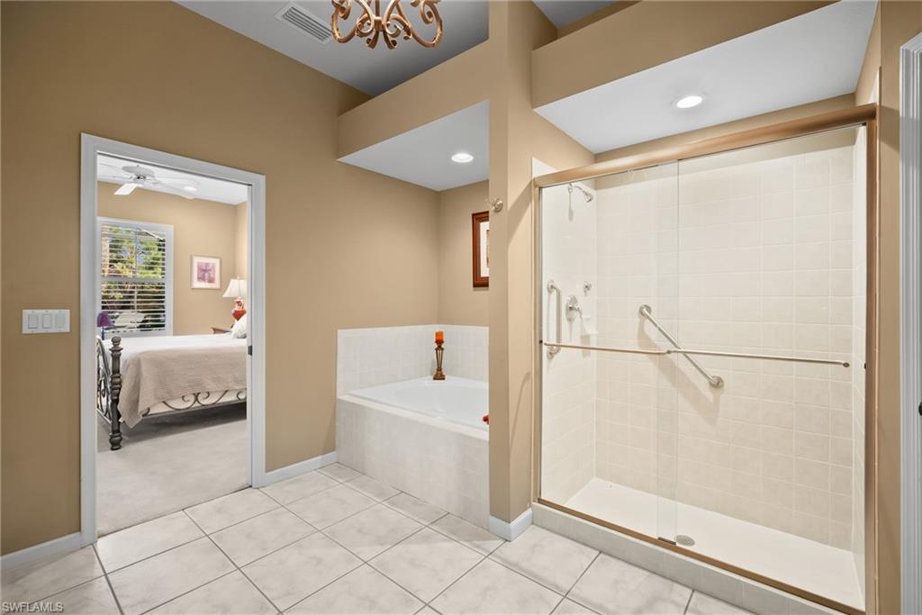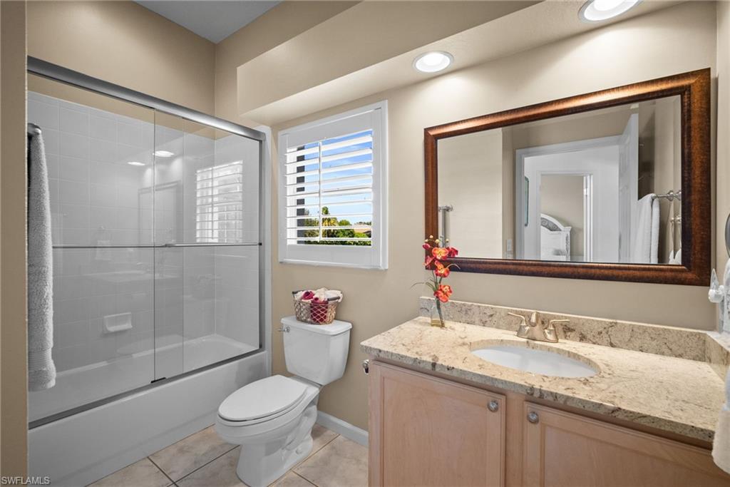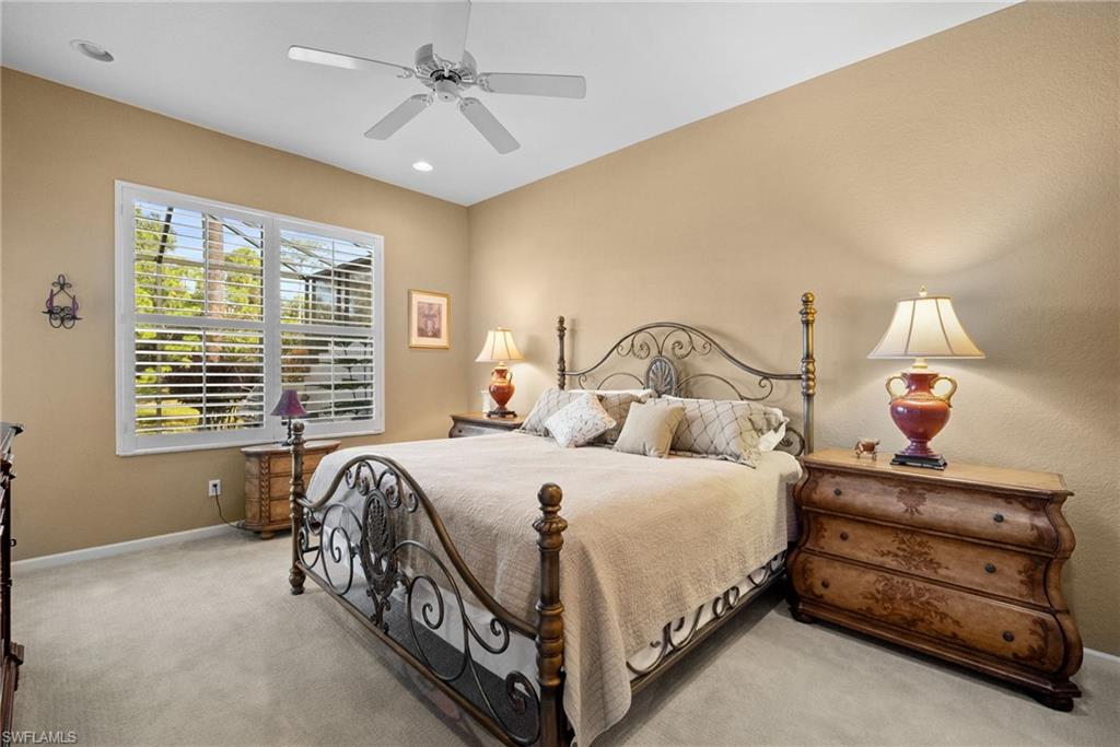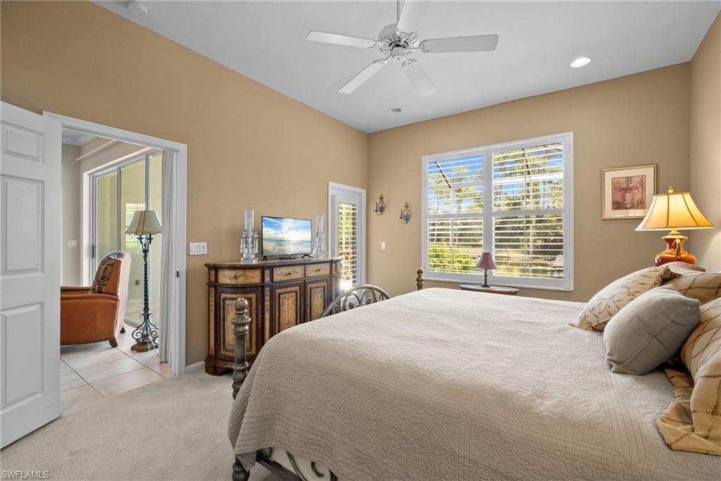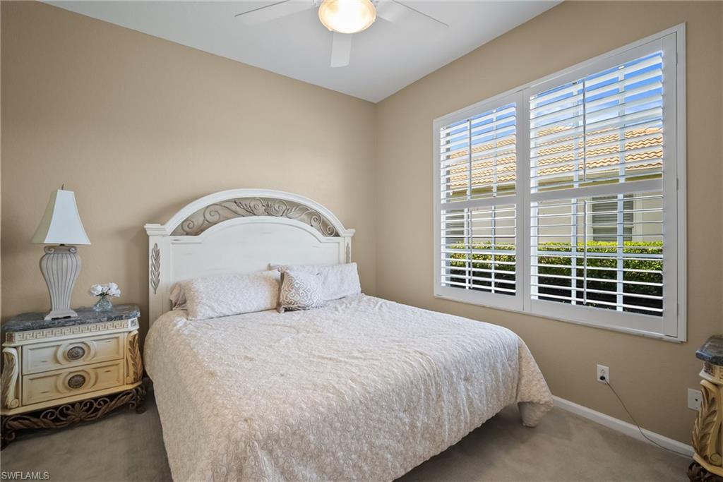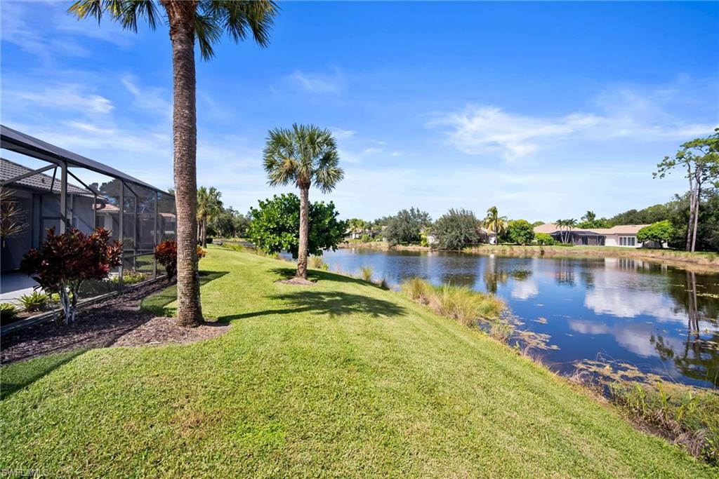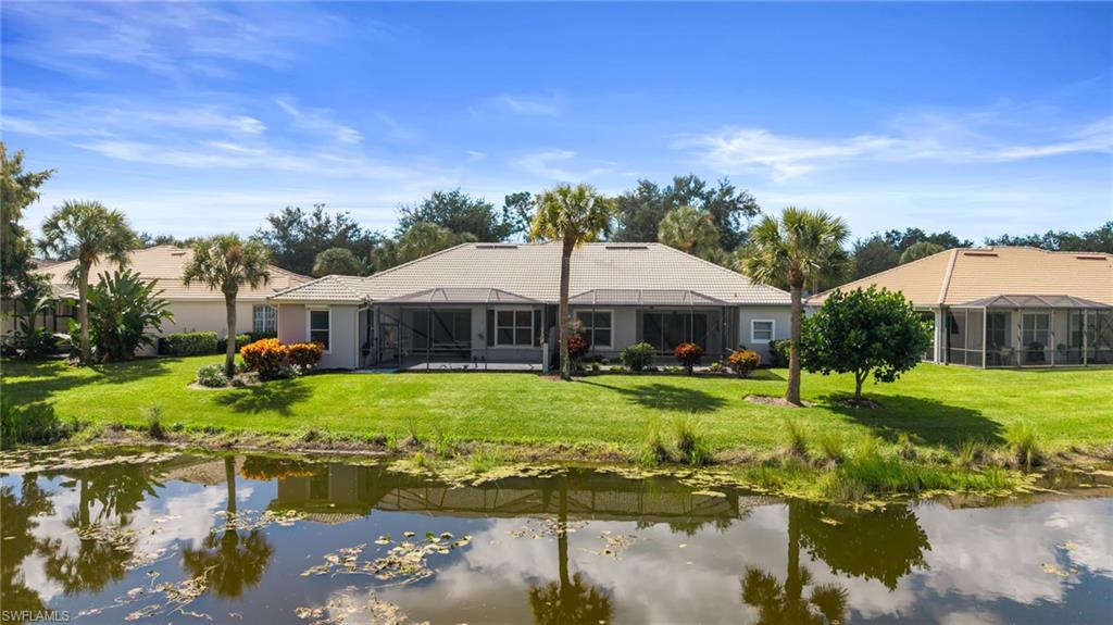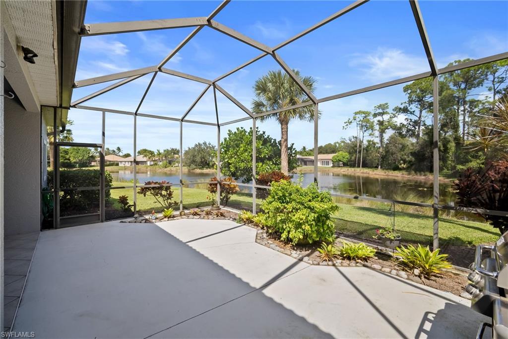 Discover an exceptional lifestyle in this charming two-bedroom plus den, two-bath villa, perfectly designed for comfort and elegant living. Functioning like a single-family home, this residence boasts one of the most coveted locations within the desirable, gated community of Autumn Woods in North Naples. Ideally situated directly across from the community pool and clubhouse, the home offers unparalleled convenience, while the expansive, oversized lanai provides daily, breathtaking lake sunsets. The 1,629-square-foot open-concept living area is perfect for seamless entertaining, flowing into an updated kitchen that features a center island, granite countertops, stainless steel appliances, and abundant cabinetry. Elegant plantation shutters throughout add a touch of sophistication, and the primary suite serves as a tranquil retreat with serene lake views, a spacious walk-in closet, and a luxurious en-suite bath with a separate tub, shower, and dual sinks. Beyond the front door, the family-friendly, amenity-rich community of Autumn Woods awaits, offering pickleball, tennis, and basketball courts, two swimming pools, a Jacuzzi, a playground, fitness center, clubhouse, 24-hour security, and miles of recreational trails through a 26-acre preserve, all within access to top-rated Collier County public schools.