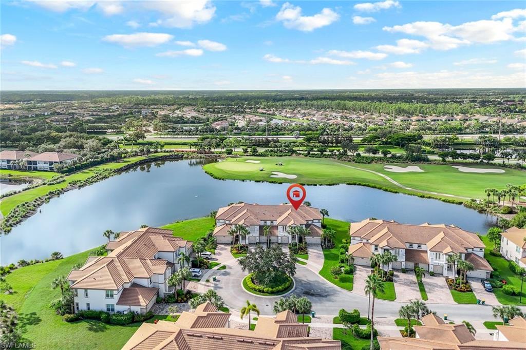 Majestic southern lake and golf course views are only part of what this beautiful corner Carriage Home has to offer. The second floor Medallion Model with private elevator is impeccably decorated and furnished in soothing neutral tones and being offered fully turnkey for total convenience. All brand new impact windows and doors give you peace of mind and quiet living, along with new A/C system! The family room is open to the kitchen that includes a morning room for breakfast or lunch aside tropical views. The stacking sliding glass doors open onto a spacious screened lanai bringing the outside in. The primary oversized bedroom also has direct access to the screened lanai as well as room for a sitting area. Curl up with your favorite book and enjoy the fresh air and spectacular views! The Quarry Beach club has been recently renovated and all residents have access state of the art restaurants, Tiki Bar, Resort and Lap Pools, 5 Pickle Ball Courts, 5 Tennis Courts, 3 Bocce Courts and a Two Story Fitness Center with many classes and personal trainers. The Quarry also offers a full time Tennis Pro and Full Time Activities Director for full time fun! The Hurdzan and Fry designed Golf Club is exceptional and offers private membership but is optional. Enjoy 18 holes of pristine golf and immerse yourself in the comradery of an active club for all levels. The Golf Club has a newly renovated grille room, terrace or formal dining without venturing outside of the gates. It's truly vacation style living in the heart of Naples. Only 25 minutes to RSW Airport or Downtown Naples and is close by to Beaches, Founders Square, The Mercato and many other convenient shoppes and restaurants. You'll love it here!