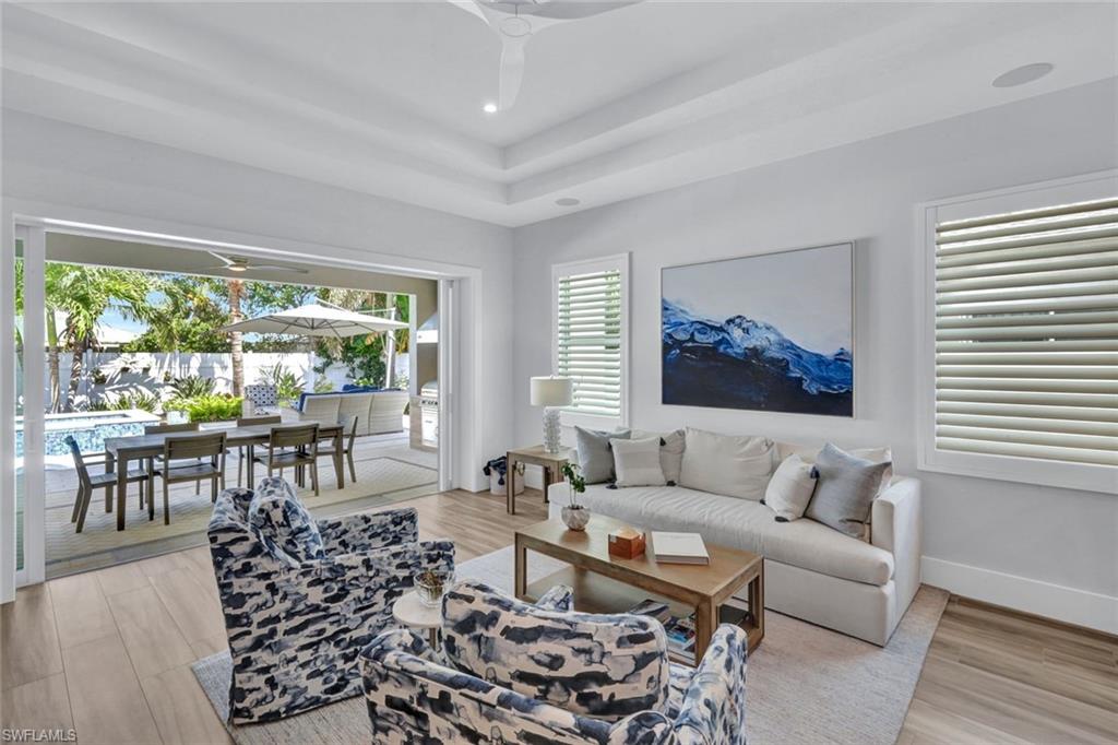 Coastal Elegance Meets Effortless Naples Living. Welcome to your coastal dream home, a spectacular newer construction offering 3 bedrooms plus a den, 4 full baths on an expansive lot and a half that provides space and privacy. Thoughtfully designed and masterfully crafted, every detail of this residence reflects the essence of refined yet relaxed Naples living. Step inside and immediately feel the sense of scale and sophistication. Ten-foot ceilings throughout are elevated by 11.5-foot double tray ceilings in the foyer, den, kitchen, great room, and primary suite. Wide-plank porcelain tile flooring through out, plantation shutters, and hurricane-impact windows and doors. At the heart of the home, the light-filled gourmet kitchen shines with white shaker cabinetry, honed Dolomite countertops, including an induction cooktop, convection oven, and microwave drawer. A custom double-door pantry offers abundant storage, while the built-in wine cooler and Sonos sound system make entertaining a pleasure. The smart home wiring allows you to control lighting, sound, and systems with a simple tap on your phone. Each bedroom retreat provides comfort and privacy, complete with California Closets and beautifully finished bathrooms. The primary suite features expansive vanity, a spacious walk-in shower, and sliding glass doors that open directly to the lanai. Step outside to your private garden oasis, where a sparkling saltwater pool are surrounded by lush tropical landscaping. Enjoy alfresco dining at the outdoor kitchen with gas BBQ, unwind in the outdoor pool shower, or host friendly games of bocce. Lanai is protected by electric roll down shutters for convenience and comfort. Additional highlights include a 2.5 car climate controlled garage for the car enthusiasts or hobbyist and a whole house generator powered by a 500 gallon buried gas tank, ensuring seamless living year round. Ideally located just minutes from Vanderbilt Beach and Mercato’s premier shopping, dining, and entertainment, this home captures the best of Naples coastal luxury, stylish, smart, and ready to enjoy!