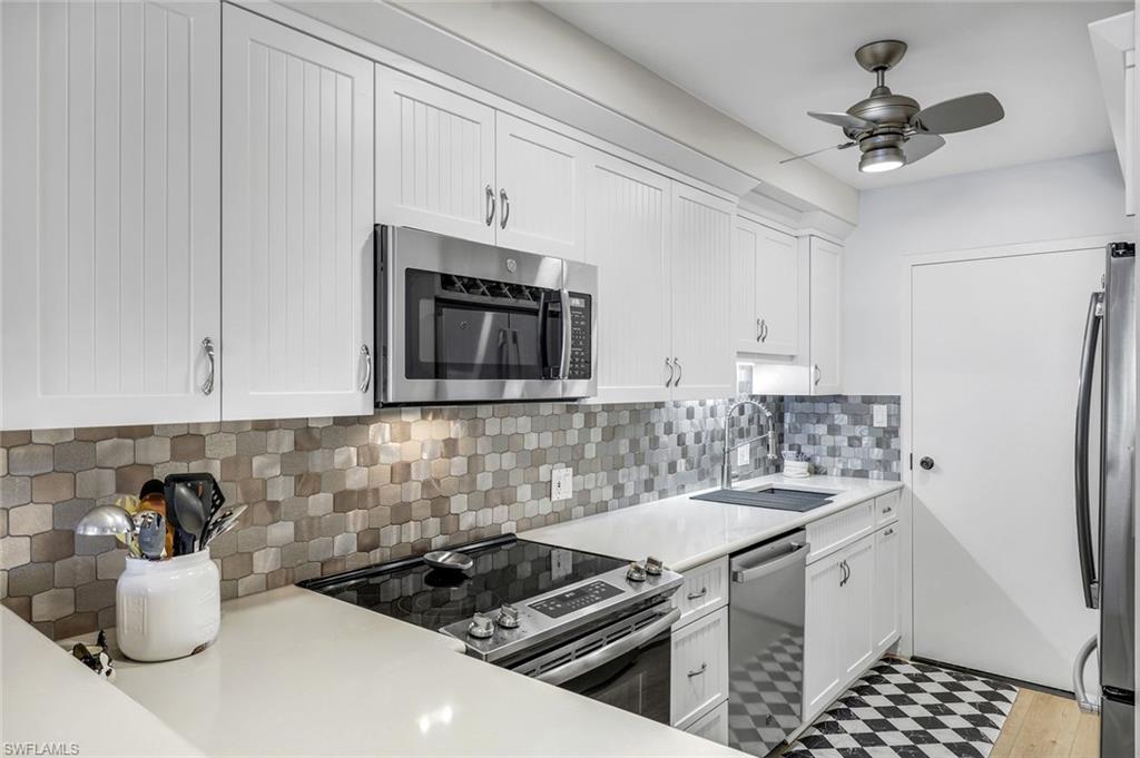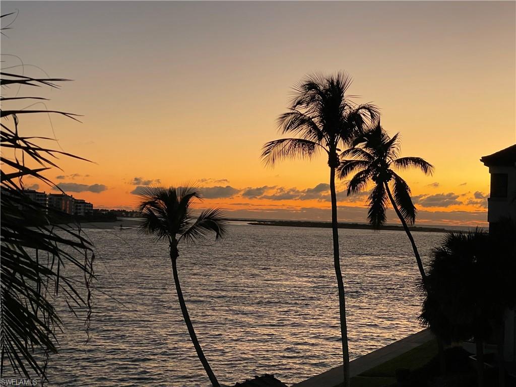 Experience the best of Isles of Capri living from this corner unit at Marco Towers, an impeccably maintained 8-story waterfront community on the Marco River. Southwest exposure with soft morning light and relief from the intense afternoon sun, plus 2 terraces (lanai off living area is screened) offering stunning sunsets and lovely river views. Expansive fishing dock with peaceful river views, riverfront Chickee Hut for sunset cocktails and conversation, and sparkling riverside pool. This beautifully updated 2-bedroom, 2-bath residence features impact sliders, extra walk-in storage closet in hallway, a fully remodeled kitchen with quartz counters, refaced cabinets, built-in pantry with pull out shelves, built-in wine rack, remodeled primary bath with walk-in shower. Extremely quiet condo due to concrete interior walls, convenient assigned covered parking, a common tool workshop for owners to use, common laundry on each floor, a fabulous fishing pier, and a gate that leads to an easement to walk around the entire La Peninsula and Twin Dolphins while enjoying the amazing water views and wildlife. SIRS and Milestone have been completed. New roof being installed in early 2026. Perfectly situated near Capri’s popular waterfront restaurants and just a short drive to Marco Island and Naples, this condo offers easy access to beaches, shopping, dining, and all the amenities of coastal living.