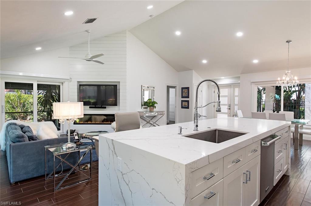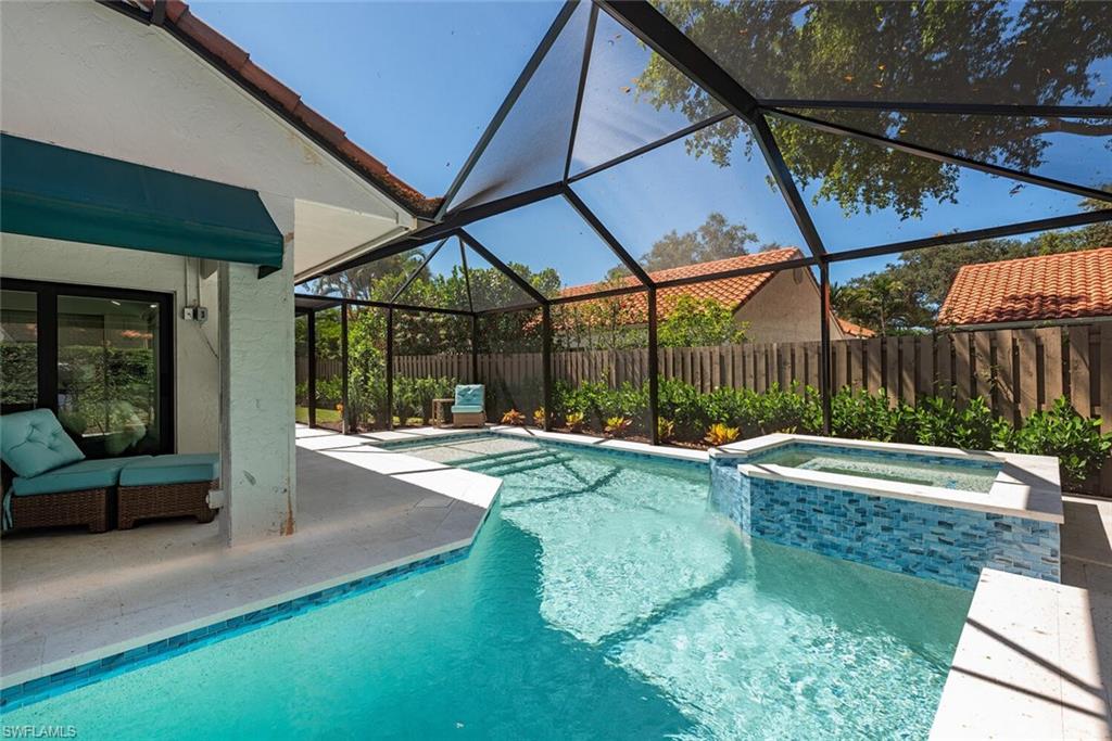 One of the rare homes in Beachwalk to feature its own private pool; this brand-new pool and spa were just completed, offering a beautiful outdoor retreat. The sparkling pool and elevated spa are framed by sleek, modern tilework and surrounded by a spacious travertine deck, perfect for sunbathing, entertaining, or enjoying a quiet morning coffee offering your own private oasis. The home has been reimagined with timeless updates, elegance exudes from every corner of this completely remastered residence! Upon entering, the great room is a sprawling space with wood-grain tile dressing the floors, a raised vaulted ceiling, and hurricane impact sliders that give way to the serene outdoor living environs. Open to the living space that features an electric fireplace with a shiplap façade, the kitchen would fit a discerning chef with its double-thick white quartz counter tops, an oversized waterfall island with breakfast seating, custom cabinetry, and Viking appliances. Sheathed in pearl-like white tile with intricate detailing from floor to ceiling, the primary bathroom perfectly complements the private primary bedroom with a large soaking tub, walk in shower, and updated countertops/cabinetry. Additionally encompassed with this residence are two guest bedrooms, one with private entry and plumbed to host a future kitchen, a well-appointed bathroom, in-home laundry and a plethora of additional features. Beachwalk is ideally nestled a stone’s throw to Naples' sugar sand coastline, as well as the fine dining and shopping found at Mercato and Waterside Shops.