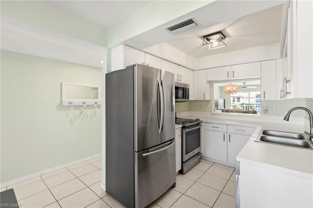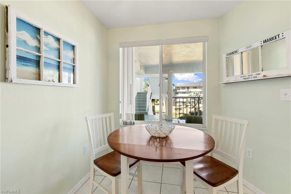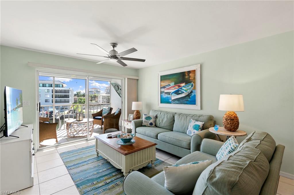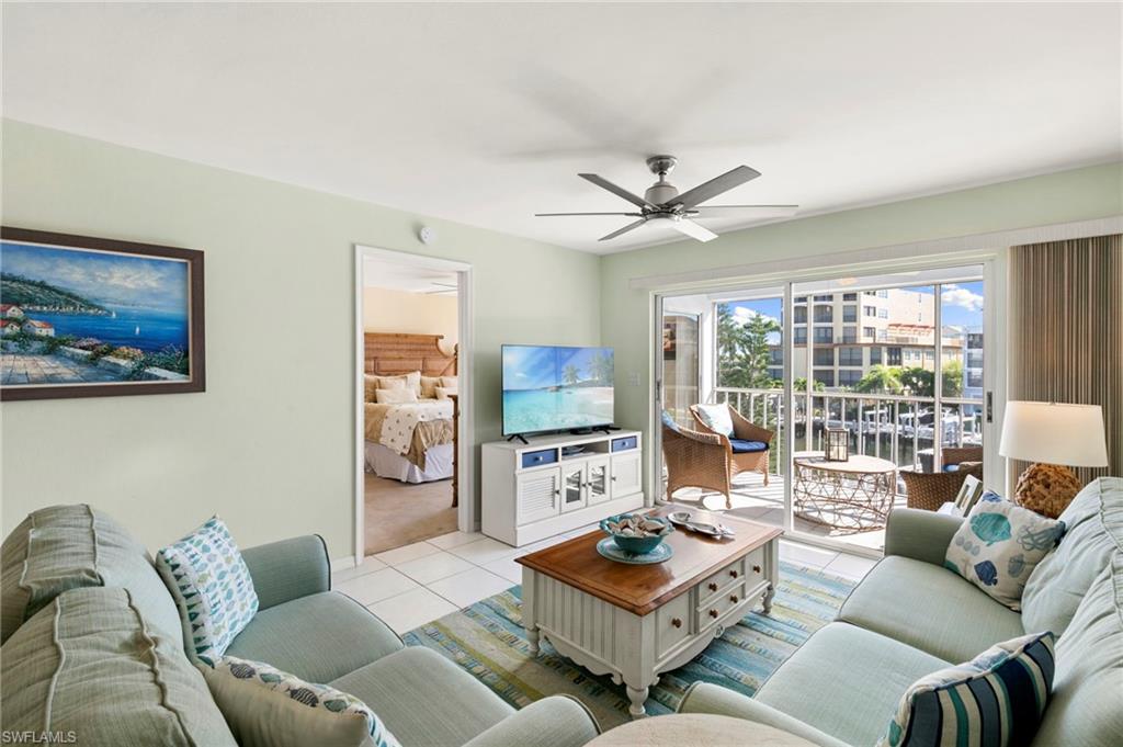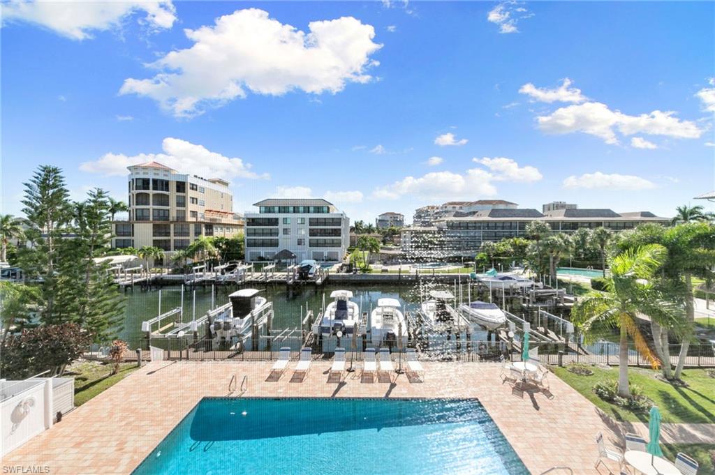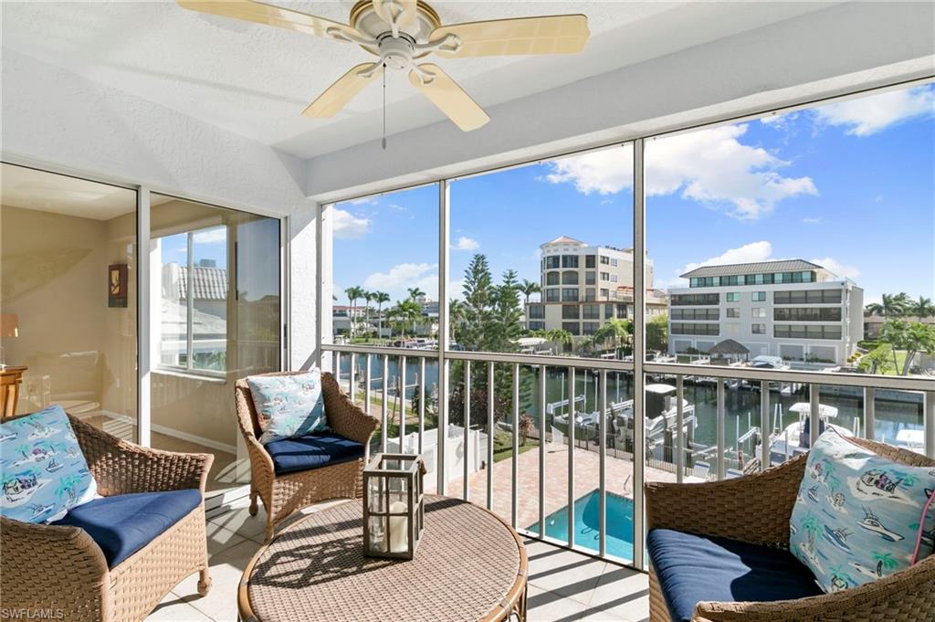 Welcome to your boating oasis at Pelican Perch! This charming 2-bedroom, 2-bathroom condominium offers the quintessential Marco Island lifestyle: short distance to the beach, ample sunshine, and access to the Gulf via one of Marco's iconic canals. The purchase of this unit includes a highly valued deeded boat dock (dock #4, marked 301), and the canal boasts direct access to beautiful Island waterways. Step inside and take in the spacious floor plan featuring tile flooring throughout the main living areas, including the kitchen, dining room, living room, bathrooms and lanai, while the bedrooms are comfortably carpeted. The kitchen is equipped with updated appliances that will help make meal prepping a breeze. The home also includes an updated hot water heater (2024) for peace of mind, and the convenience of an in-unit laundry with shelving. The primary bedroom offers a true retreat, and includes a walk-in closet and private access to the screened lanai, where you can enjoy serene views of the canal. The en-suite primary bathroom features dual sinks, providing ample space and comfort. Laid back Island life becomes even easier with covered assigned parking under the building. Owners may have one pet up to 20 pounds. Residents of Pelican Perch enjoy a variety of community amenities, including a refreshing community pool adjacent to the canal, a barbecue and picnic area perfect for outdoor gatherings, secure bike storage, and an elevator for easy access. Experience the best aspects of Marco Island living with this exceptional condominium. Schedule your showing today!