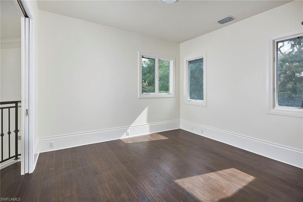 On a private, nearly half-acre end homesite in the prestigious Estates neighborhood of Grey Oaks Country Club, this elegant residence offers refined living in one of Naples sought-after communities. The home features four bedrooms plus a private study, with neutral stone and wood flooring throughout and exquisite ceiling details enhancing nearly every room. A grand mahogany entry door opens to soaring ceilings, a striking gas fireplace with stone surround and a large picture window that fills the living space with natural light. The living room flows effortlessly into a formal dining room with French doors overlooking the side yard, creating an ideal setting for entertaining. The remodeled kitchen is a showpiece, boasting white cabinetry, quartz countertops and new appliances, all opening to a spacious family room. Go outside to a large, private backyard with ample room for a new custom pool. The covered lanai provides the ideal space for alfresco dining or relaxing while enjoying Naples mild winter climate. The primary suite is a serene retreat, featuring newer wood flooring, dual vanities, a soaking tub and two custom walk-in closets. Two guest suites upstairs and an additional suite on the main level, each with its full bath, offer comfort and privacy for family and visitors alike. Additional highlights include a private study with a fireplace, coffered ceiling and built-in bookshelves, a three-car climate-controlled garage, new roof and landscaping, and a separate laundry room. Experience the ultimate in luxury living at Grey Oaks Country Club, where residents enjoy three championship golf courses, world-class amenities, and proximity to Naples renowned dining, shopping and pristine white sand beaches.