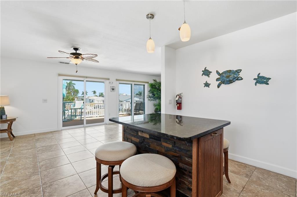 RARELY AVAILABLE! NO HOA FEES OR RENTAL RESTRICTIONS! Just over the bridge from Fort Myers Beach, this elevated canal-front home with direct Gulf access on San Carlos Island offers an exceptional waterfront lifestyle. Step inside to a bright and open main living area with plantation shutters and easy access to a spacious deck overlooking your private dock. The kitchen is beautifully appointed with solid wood cabinetry, soft-close drawers, granite countertops, an island and stainless steel appliances. The master suite features an updated bath with quartz counters and a large shower. Upstairs, a generous bedroom provides a full bath and ample closet space. The lower level (approx. 800 sq ft) includes a garage, sunroom, half bath with shower, and a flexible room perfect for a guest suite, office, or studio. The paver driveway leads to the garage with a retractable screen, letting in refreshing island breezes. Your dock comes equipped with water, electric, a 10,000 lb boat lift, remote-controlled jet ski lift, and a floating kayak dock. Located near favorites like Doc Ford’s, Dixie Fish Co., Bonita Bills, and Tina’s Bar, and just minutes from the new Margaritaville Resort, this is a rare waterfront opportunity in a vibrant, growing area—don’t miss your chance!