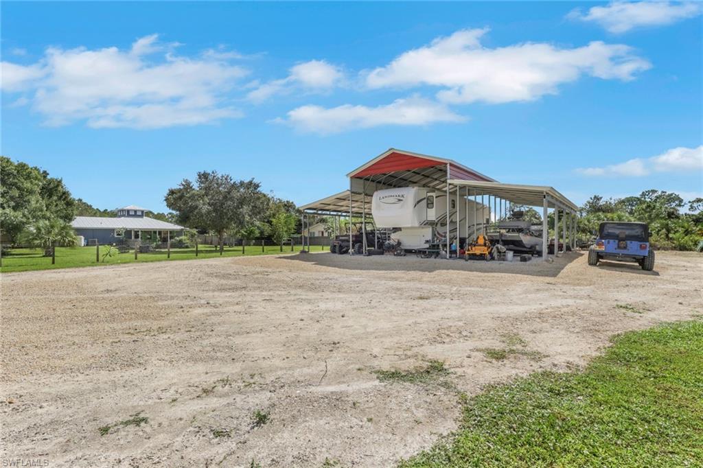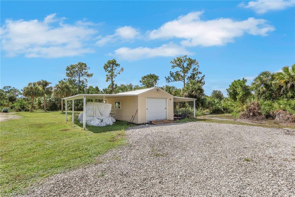 Expansive Workshop, Updated Home & Beautiful Fenced Property... Not in a Flood Zone! This property is a rare find featuring a newly built 1,680sf open-air workshop offering exceptional space and flexibility for storage, equipment, large projects, or even horses and other livestock. An oversized gravel area allows trucks and equipment to easily pull through the building or around it, no need to back up or turn around. The property also includes a 336sf shed with two attached carports, a chicken coop, and is fully fenced and cross-fenced with plenty of open yard space and beautiful mature oak trees. The well-maintained home is thoughtfully positioned on the lot for privacy and curb appeal. Recent upgrades provide major peace of mind, including a new AC installed in 2024, a metal roof only 7 years old, and a water heater, well equipment, refrigerator, and garbage disposal all less than 3 years old. The attached garage adds even more potential, it can function as a traditional garage or has already been framed out for two bonus rooms, perfect for a bedroom, office, or storage, adding approximately 400sf of flexible space. The beautiful grounds also feature avocado, mango, Barbados cherry, mulberry, sugar cane, dragon fruit, pineapples, and banana trees, creating a lush and productive landscape to enjoy year-round.