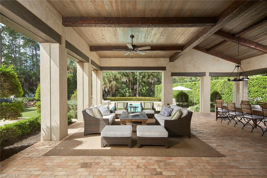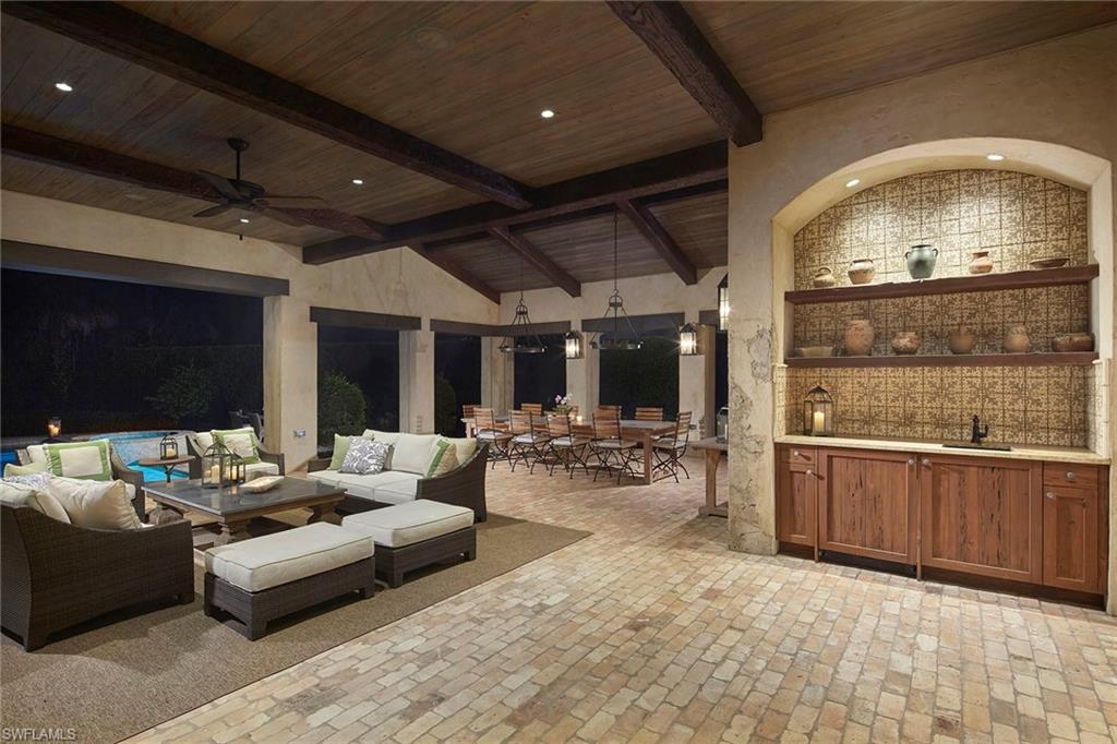 This authentic custom home, hand-crafted by BCB Homes in 2009, is on an extremely private .74-acre homesite within the prestigious Mediterra community. Offering over 6,600 square feet of luxurious living space, the residence features four bedrooms, four full baths, and one-half bath designed for elegance and comfort. The open-concept floor plan is ideal for entertaining family and friends, with a chef’s kitchen boasting top-of-the-line Viking and Sub-Zero appliances, a spacious center island, a well-appointed butler’s pantry ideal for catering and abundant custom cabinetry. The family room serves as the heart of the home and flows seamlessly into an impressive library adorned with vaulted wood-beam ceilings and a stone gas fireplace. The private owner’s suite is a serene retreat, highlighted by hand-scraped wood floors, an adjacent wood-paneled study, a white marble bath and dual custom closets. Outdoor living is equally impressive, featuring a large, covered lanai with a dining area, comfortable sitting space and a fully equipped outdoor kitchen. The outdoor oasis continues with a heated pool, raised spa and gas fire pit, ideal for year-round enjoyment. Additional features include a Lutron lighting system, a climate-controlled three-car garage, Andersen impact windows and doors, and a custom temperature-controlled wine cellar. Residents of Mediterra enjoy an unmatched lifestyle with access to two 18-hole Tom Fazio–designed golf courses, a full-service wellness and fitness center, and a newly refurbished Beach Club offering an elevated pool and Gulf-front dining on the white sands of Hickory Island. A world of luxury, privacy and craftsmanship awaits within this exquisite Mediterra estate.