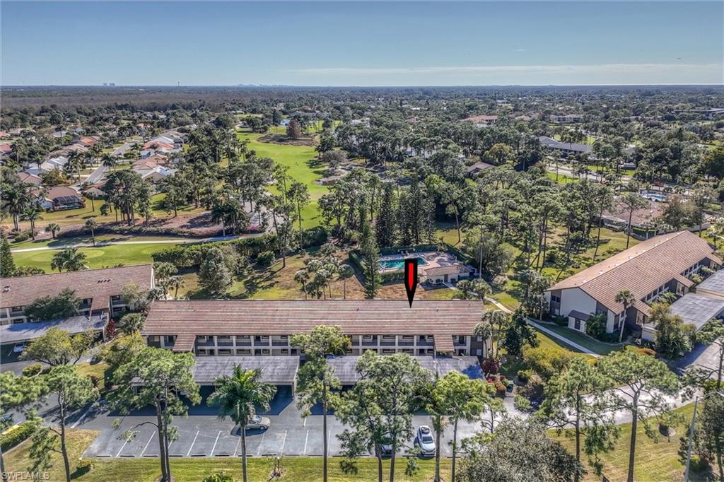 Perfect 1st floor location for easy access from carport to front door! New AC with 10 year warranty. Excellent South Naples location close to so many conveniences. This south facing condo overlooks green space, mature landscaping and is just steps from the pool. Covered carport and extra storage included. Two bedrooms and two baths. Updated master bath with dual vanities. Tile through out and granite kitchen counters. New refrigerator, stove and dishwasher and also NEW AC. Will be freshly painted early January. The buildings have a newer roof and have been freshly painted. Just minutes to downtown Naples, beaches, & Bayshore art district. This condo has never flooded.