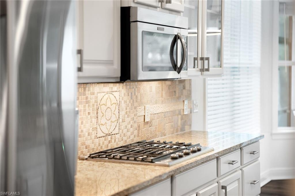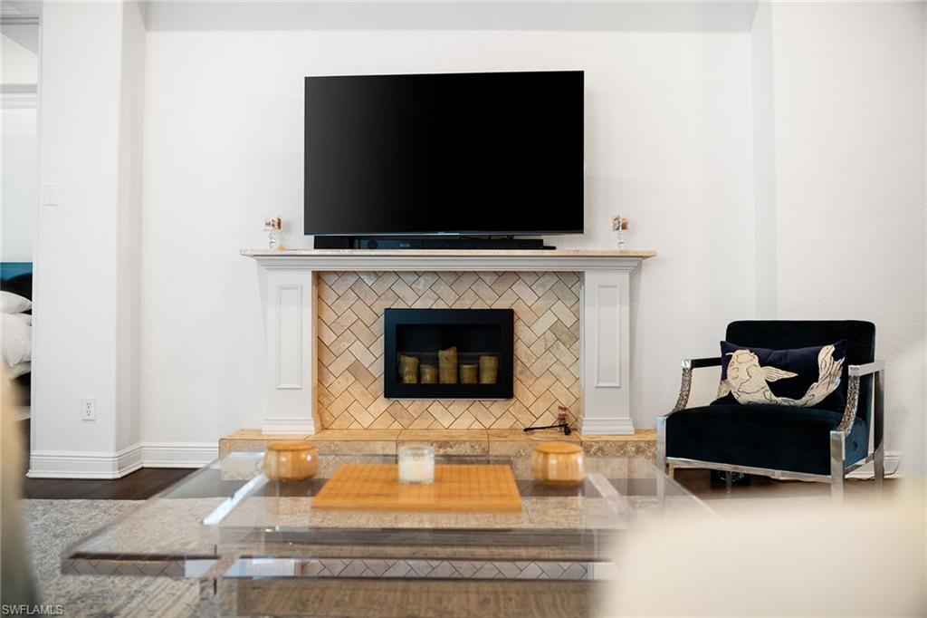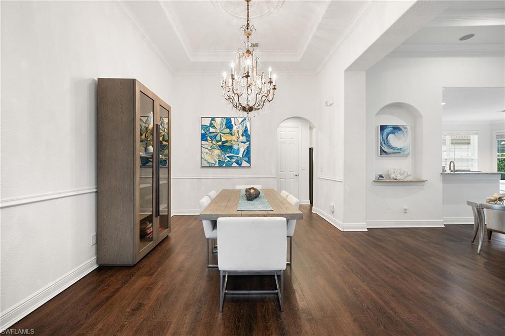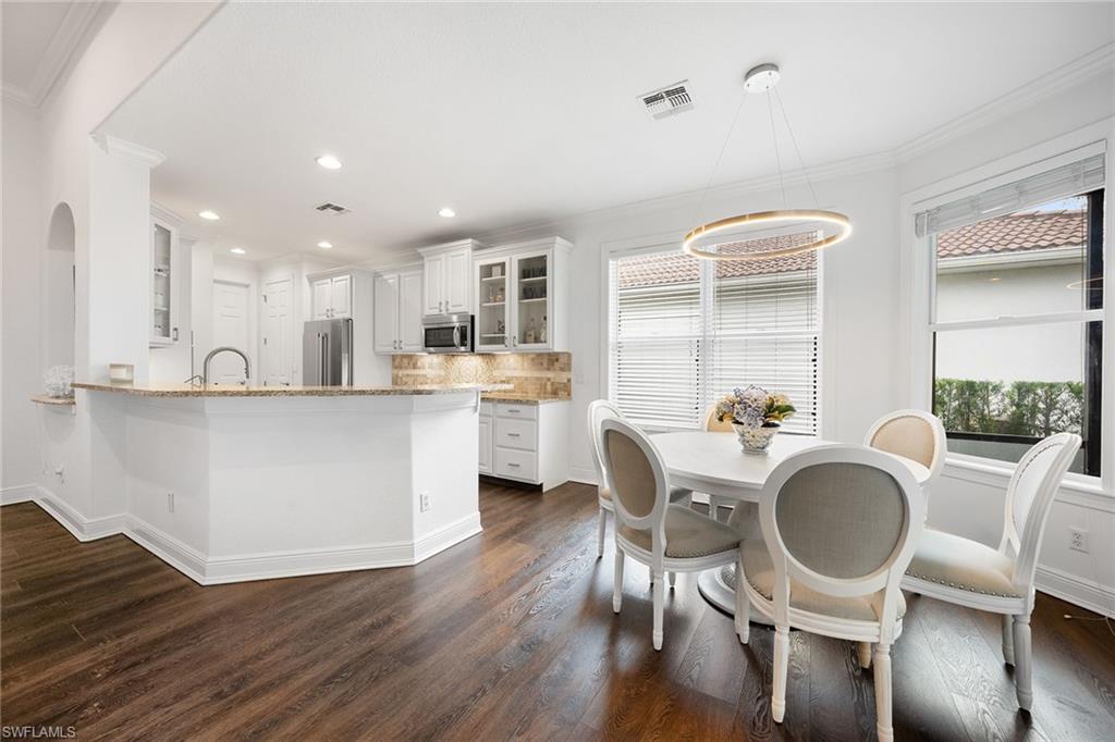 Immaculately maintained Toll Brothers Biella floor plan featuring two bedrooms, a spacious den and two baths. This beautifully appointed home offers a peaceful setting with serene wooded views and a thoughtfully designed interior. The inviting foyer showcases custom designer wall coverings, leading into a bright and open living area. The primary suite is a retreat with a luxurious bath featuring a soaking tub set on a custom stone surround and separate shower. The private backyard provides room to add a custom pool if desired or simply enjoy the resort-style community pool just a short two-minute distance away. Complete with a two-car garage, this home is ideally in the sought-after gated community of Aviano, close to Naples beaches, dining and shopping.