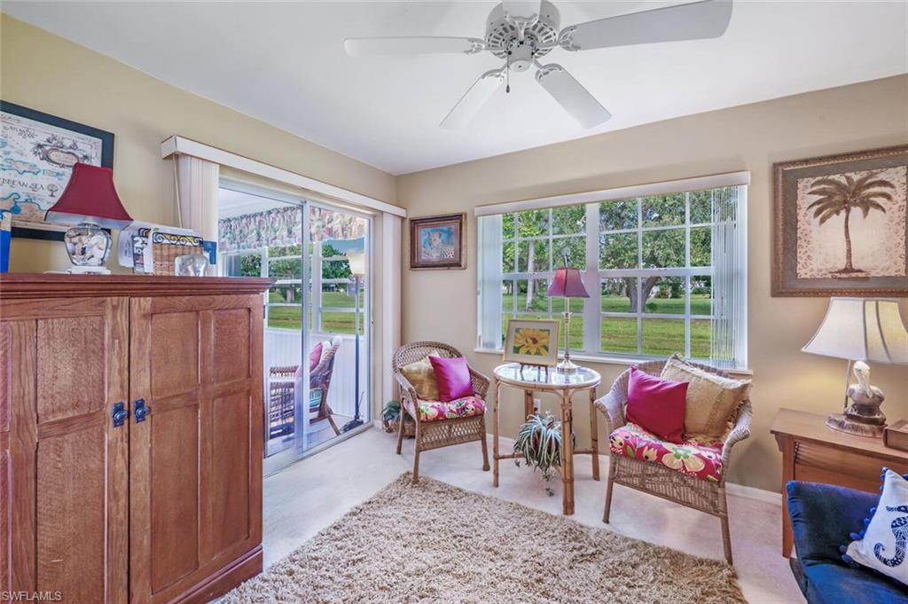 This well-maintained 2BR+DEN/2BA home is located in Riviera Golf Estates, a vibrant 55+ community. The light-filled residence offers 1,235 s/f under air plus a 300 s/f glass-enclosed lanai with tile flooring. The main living area has tile on the diagonal and a high tray ceiling. The kitchen has a pantry for extra storage space. The Master BR includes a spacious walk-in closet. There are dual sinks in the Master BA. The tucked-away back patio is perfect for grilling or simply enjoying the warm climate in winter. There is a two-car garage, accordion shutters for storm protection, and a new water heater (2024). A private well for irrigation purposes cuts down on your water bill while keeping the landscaping lush year-round. Riviera Golf Estates has resort-style amenities, including a saltwater pool, tennis/pickleball/shuffleboard/bocce courts, an exercise room, a billiards room, and a clubhouse with a full social calendar. All this for a low HOA fee of just $144/month (includes internet), one of the lowest fees in East Naples. Located just ten minutes from 5th Avenue and eight miles from Naples' gorgeous beaches, this home combines comfort, convenience, and affordability in one of the most sought after beachside communities in the country.