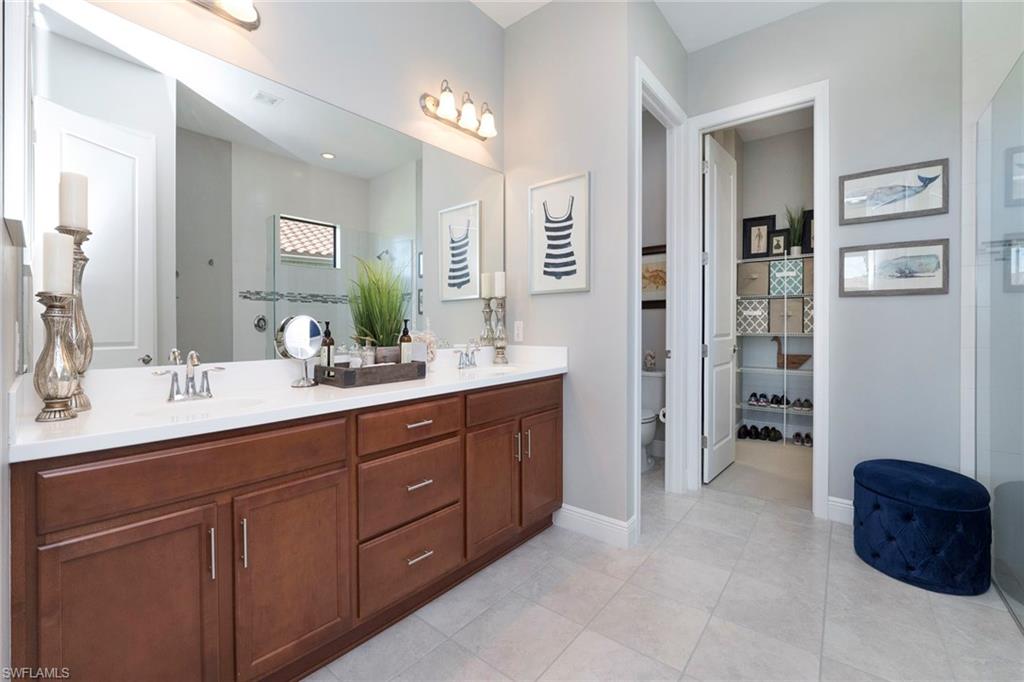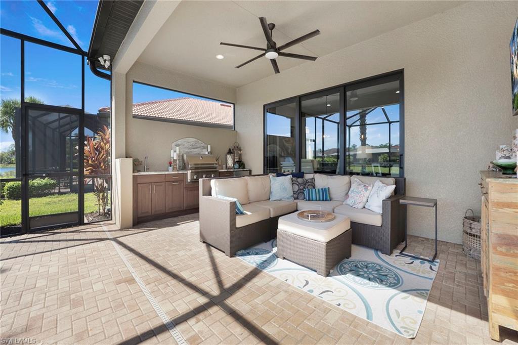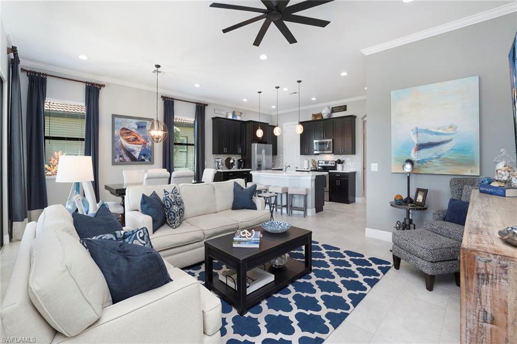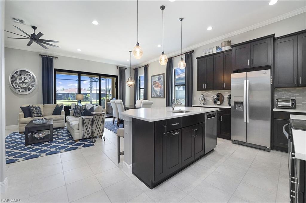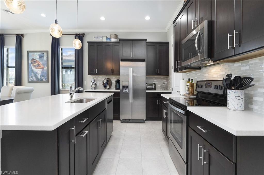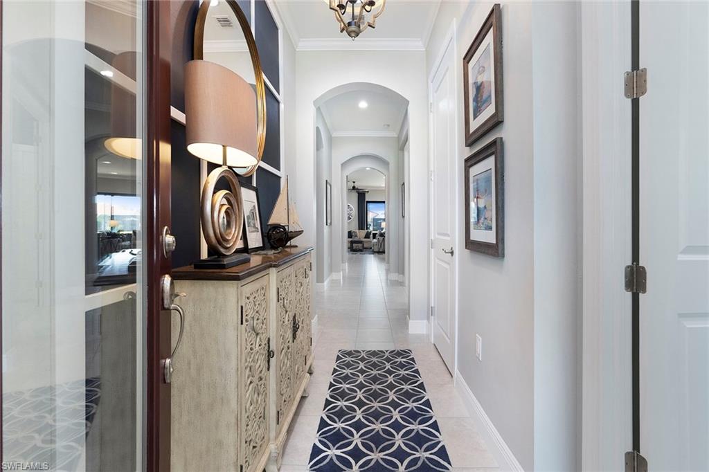 Furnished. Impeccable and highly sought-after yet rarely available Key Largo model by renowned WCI, professionally decorated and offered fully furnished and beautifully appointed. On an oversized pie-shaped lot that offers exceptional privacy and additional lawn space. Stylish upgrades include crown molding, custom decorative trim and accent molding, upgraded baseboard molding, elegant window treatments, and impact-resistant windows. The gorgeous kitchen showcases Merillat maple cabinetry with 42-inch uppers, upgraded soft-close doors and drawers, quartz countertops, an oversized counter-height breakfast island, Pottery Barn pendant lighting, custom glass tile backsplash and large walk-in pantry. Enjoy the outdoor summer kitchen featuring a stainless steel gas grill, refrigerator, sink, granite countertop and backsplash, and storage cabinetry. The expansive and luxurious primary suite offers serene long-lake and preserve views and a spa-inspired main bath with dual-sink quartz vanity, frameless Euro-glass shower, private water closet and spacious walk-in closet. Two generously sized guest suites, each with a private en-suite full bath, ensure comfort and privacy. The stylish great room and dining area overlook the water and preserve, while the mudroom drop zone adds everyday convenience. A large laundry room includes abundant cabinetry and a utility sink. Additional features and upgrades include 8-foot interior doors, 10-foot ceilings, Listello accent tile in all baths, ceiling fans throughout, recessed lighting with Lutron remotes, timers on bath fans, Ring doorbell and floodlights, HVAC UV air purifier and condensate pump, and flat screen TV wall pre-prep in all bedrooms, great room and den. Also, a Taexx in-wall pest control tube system. The pristine garage features a professional epoxy floor, slat wall system, storage cabinets and a large hanging storage shelf. Artesia is one of Naples sought-after upscale gated communities, known for its luxurious amenities and active lifestyle. The definition of peaceful living, Artesia is along the southern and western edges of Rookery Bay, a protected national estuarine reserve, where the community enjoys a rare kind of serenity surrounded by peaceful nature. Just minutes from beaches of Naples and Marco Island, Artesia offers a boutique setting where natural beauty and convenience meet. Residents enjoy access to an impressive array of amenities. The modern clubhouse hosts lively community social events and features a resort-style pool, three pickleball courts, two bocce ball courts, billiards, fully equipped gym and movie theater. Residents also enjoy exercise and craft classes, as well as beautiful lakeside walking path and dog parks. Short drive from downtown Naples and Marco Island, this home offers the best of both worlds like a peaceful, luxurious community and proximity to vibrant local attractions. HOA fee includes cable/internet. No CDD fee. Click link for 3D tour and floor plan.