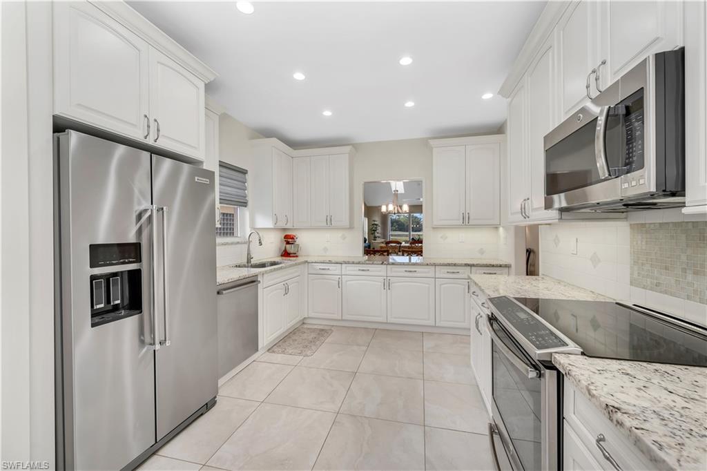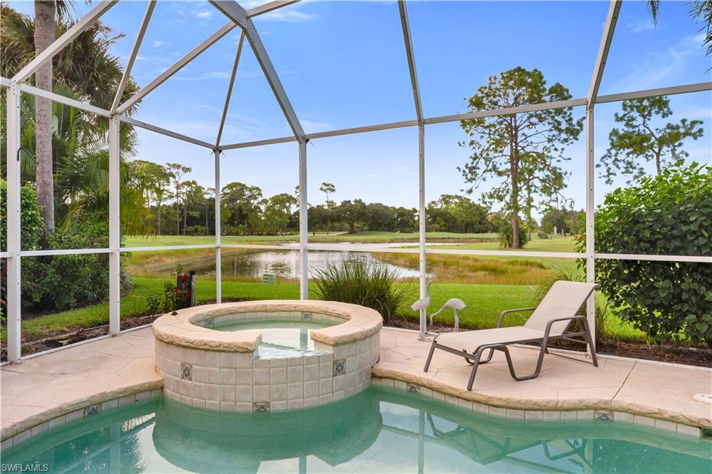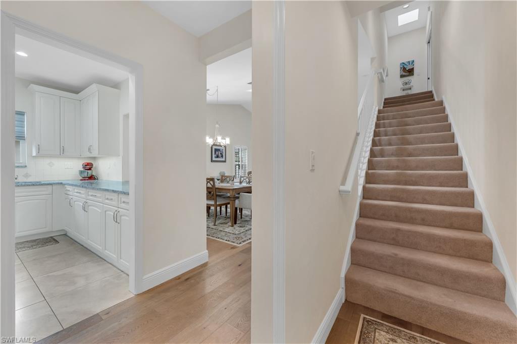 Beautiful long lake and golf course view. We are proud to feature this renovated, spacious 3 bedrooms, 3 bath home which features nearly 3000 square feet of under air conditioning living space! Located on the 6th hole of the Wyndemere Gold Course. The lanai features a swimming pool and spa with spectacular views. As you walk through the entrance of the home, you will immediately notice the contemporary feel highlighted by white oak wood flooring. Three skylights bring a warmth to the great room and a well placed center island features a wine refrigerator. The primary suite includes sliding doors to the lanai, walk-in closet and recently refurbished bath area. The second floor offers a second primary suite, approximately the same size as the primary suite, along with a renovated bath area with both a shower and a separate free standing tub. The third bedroom/den also includes its own au-suit. An oversized kitchen features stainless steel appliances and ample counter space. Wyndemere Country Club has been awarded the Platinum Club statis and is conveniently located minutes to the beach and downtown Olde Naples. Wyndemere offers a 27-hole golf course which was designed by Arthur Hills, 10 Har Tru tennis courts, 7 pickleball courts, bocce, croquet, fitness center and restaurants.