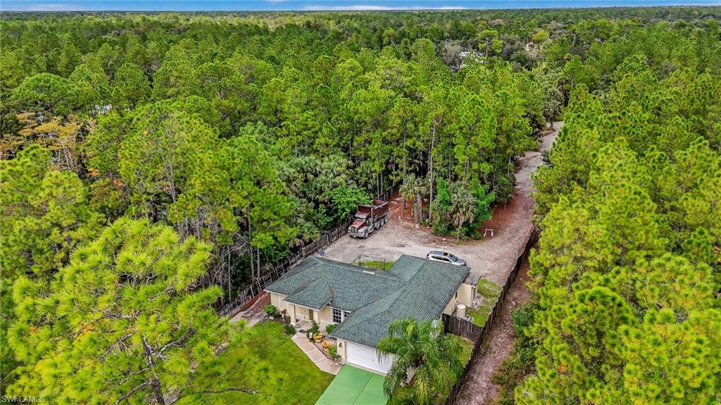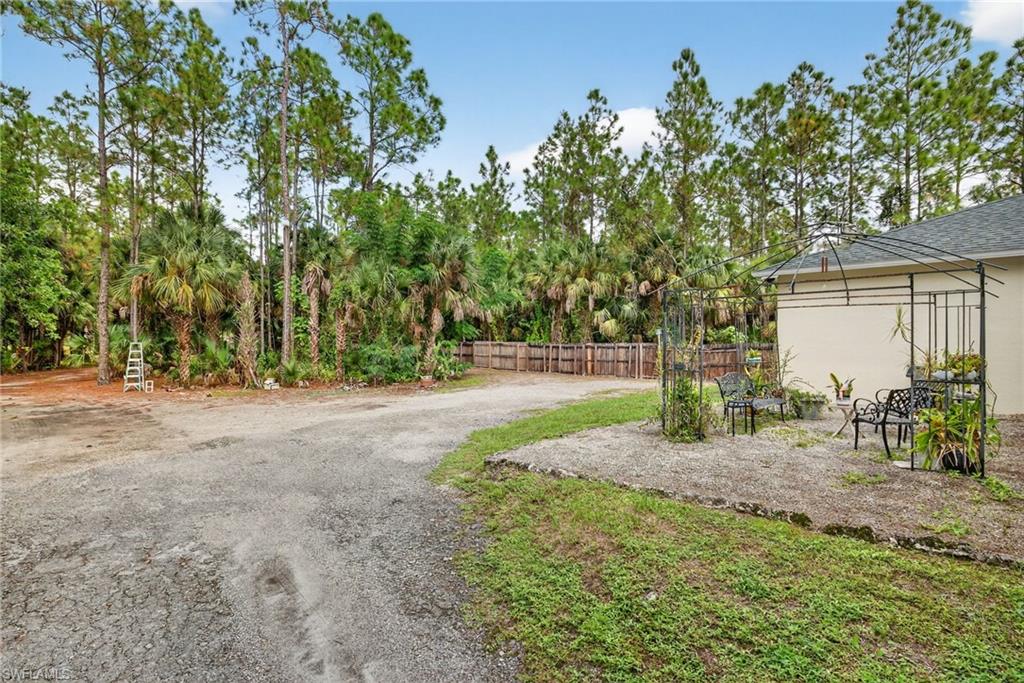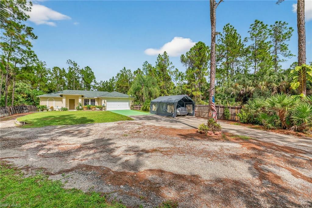 Move-in ready 3BR/2BA single-family home on 1.14 acres in Golden Gate Estates! This well maintained, 3 bedroom, 2 bathroom home features newer roof (2019), remodeled kitchen, Newer AC and water heater (2024), Remodeled master bathroom, custom built concrete storage shed (size 20x24) with an outdoor terrace, various fruit trees (bananas, mango, guava). Expansive lot is cleared and asphalted with room for multiple vehicles, RVs, pool or workshop. No HOA Restrictions! Enjoy biking or relaxing across your own acre plus retreat. Relish peace and privacy with a fully fenced yard and gated entry. Ideal for first-time buyers, investors, or anyone seeking space and tranquility in Naples. Schedule your showing today!