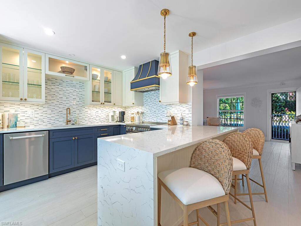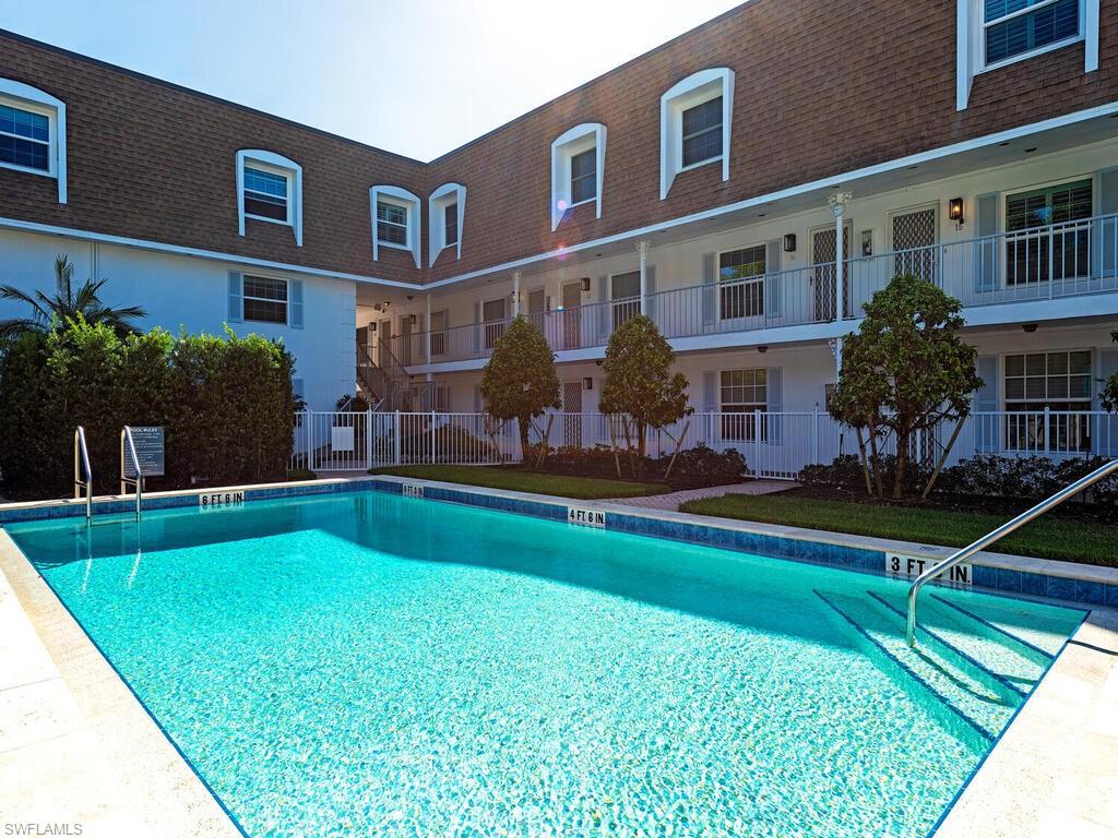 Just a short stroll from the pristine beach, bustling Saturday farmers market, and vibrant 3rd Street South, this stunning 2-bedroom, 2-bath condo offers an unparalleled lifestyle in one of Naples' most sought-after areas.Indulge in the elegance of this meticulously remodeled first-floor unit, showcasing opulent furnishings and exquisite impact doors and windows. This poolside haven embodies refined living, with no detail overlooked in its comprehensive renovation. Enjoy striking oversized wood porcelain tile flooring, custom trim, and elegant 3-panel solid core doors fitted with premium Emtek hardware, creating an atmosphere of sophistication.The gourmet kitchen is a culinary dream, featuring professional-grade appliances, custom cabinets with polished stainless steel and glass fronts, and designer lighting that illuminates the space. A stunning quartz peninsula with a captivating waterfall edge serves as the perfect centerpiece for entertaining or quiet moments.Equipped with full hurricane protection, including impact-rated windows and doors, this home offers peace of mind during storm season. The building has successfully passed all required Florida condominium inspections, ensuring structural soundness and compliance with current standards.Located just steps from the Gulf and the world-famous Naples Pier, enjoy morning walks along the beach, sunset views, and the charm of nearby Third Street South and Fifth Avenue South, where fine dining, boutique shopping, and art galleries await. Parks like Cambier Park and Baker Park are also just minutes away, providing green space and recreation right in town.This move-in-ready home is ideal as a primary residence, seasonal retreat, or investment opportunity. With its turnkey furnishings, updated interior, and unbeatable proximity to the beach and downtown Naples, this property captures the very best of the Naples lifestyle.