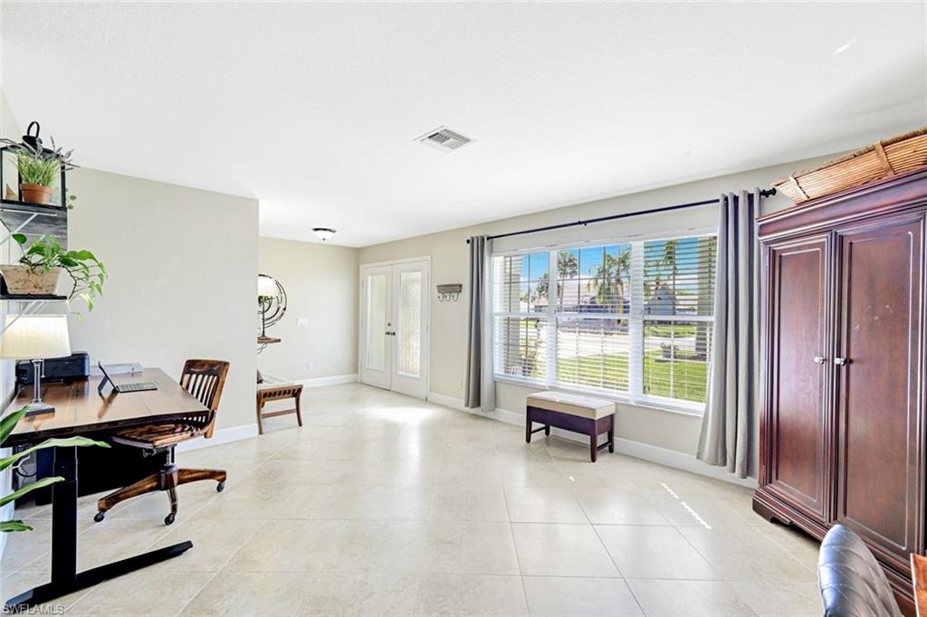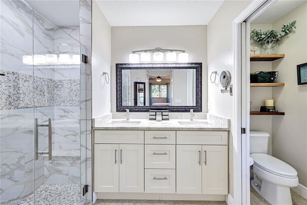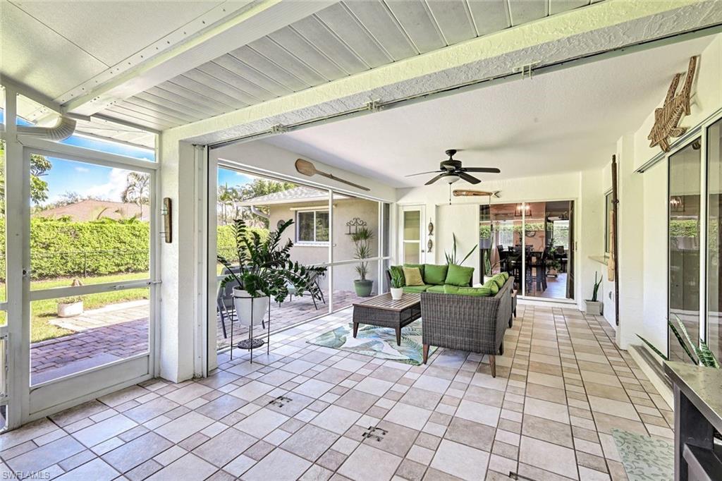 Discover this awesome Willoughby Acres home offering exceptional space, privacy, and timeless Florida charm! Situated in the heart of North Naples, this residence features a huge fenced-in backyard, perfect for outdoor living, entertaining, or even a future pool. Enjoy the freedom of living in a highly desirable community with no HOA fees. Step through the double door entry into a bright, open living area with 20-inch tile flooring, vaulted ceilings, and abundant natural light. The kitchen includes upgraded wood cabinetry, granite countertops, stainless steel appliances, and a custom tumbled marble backsplash, ideal for cooking and entertaining. The spacious owner’s suite offers dual walk-in closets and a beautifully remodeled bathroom featuring dual sinks and custom tiled shower. Each guest bedroom includes a walk-in closet, and the oversized laundry room provides additional flex space and storage. Step outside to the expansive screened lanai, complete with an above ground spa and terrace overlooking the private backyard; it’s inviting space to unwind or entertain. Electric and manual storm shutters offer peace of mind, along with a new roof in 2018 and a brand-new water heater. Collier County Public Schools shows this home is zoned for top rated schools. Located just minutes from Naples’ finest beaches, dining, shopping, and entertainment. This home perfectly blends comfort, style, and convenience.