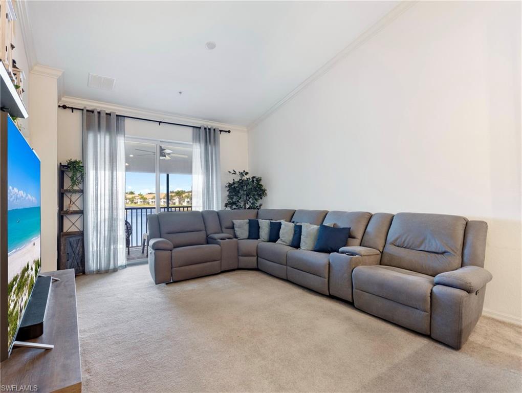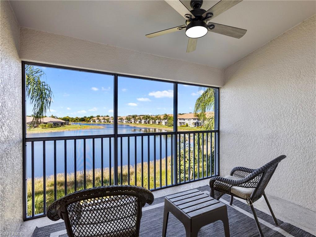 This second-floor lakefront condo in the popular Bella Terra community offers one of the most beautiful water views in the area and is a great value in Estero. The open layout is perfect for both everyday living and entertaining, offers high ceilings and neutral colors throughout that make the space feel bright and inviting. High-impact windows and slider add peace of mind and energy efficiency. MAY BE PURCHASED FULLY FURNISHED. Set in a well-maintained, gated neighborhood with resort-style amenities, this condo offers comfortable, low-maintenance living in a highly desirable location. Amenities include: 24 HOUR GATED and PATROLLED SECURITY, LAWN MAINTENANCE, IRRIGATION, HIGH SPEED INTERNET and CABLE. In addition: a resort-style Clubhouse, 24 hour fitness center, resort-style pool and spa, secure and shaded children's play area, pickleball courts, sand volleyball courts, tennis courts, bocce ball courts, basketball courts,an in-line skate rink, multi use sports field, fishing lakes, walking paths, and a tranquil butterfly garden. Community Activities Include: Activities for all ages, Food truck nights, Water aerobics, yoga, bingo, poker, cards, kids soccer league, holiday events and more!!