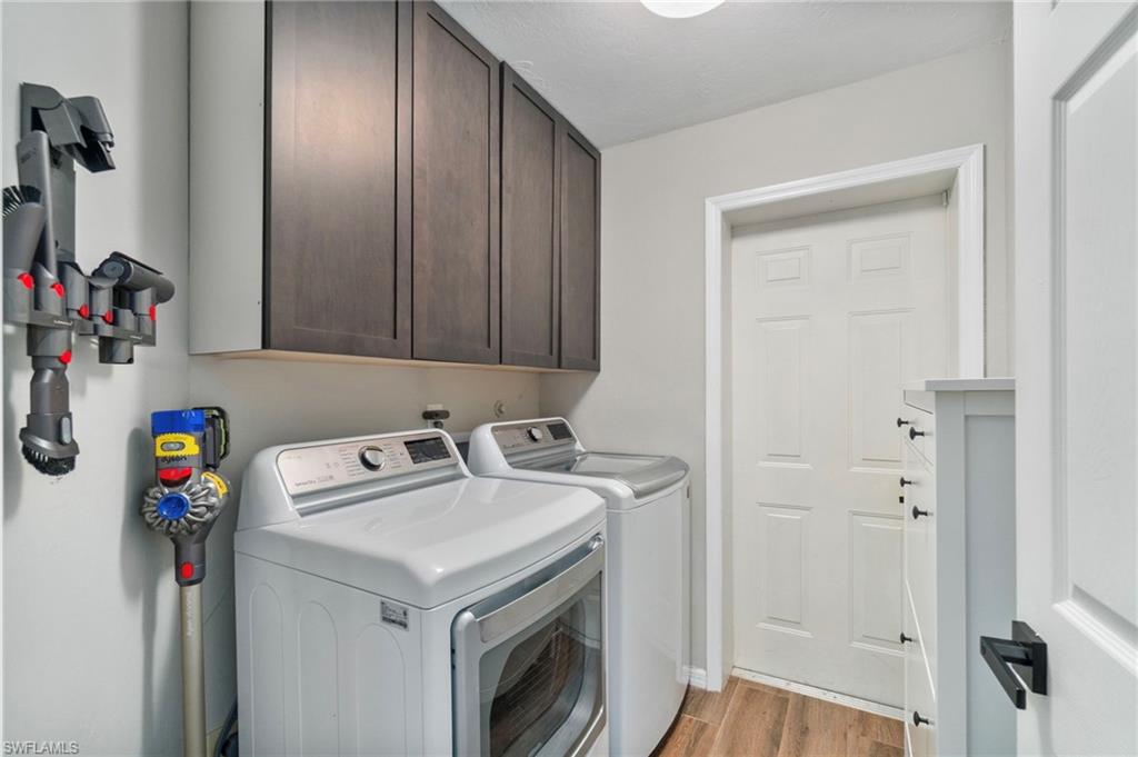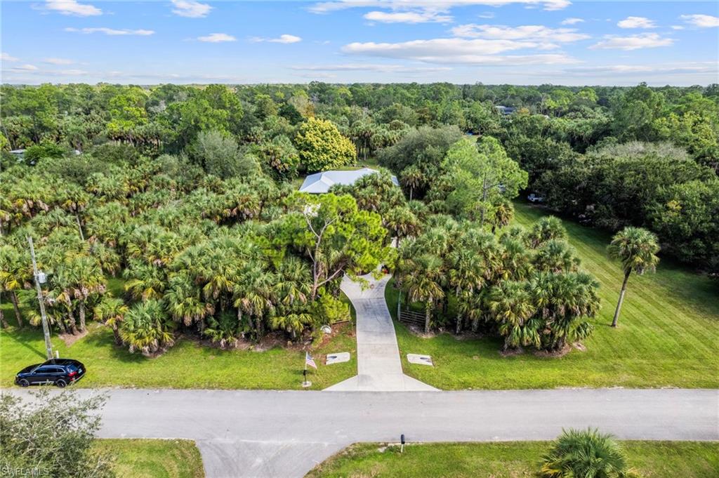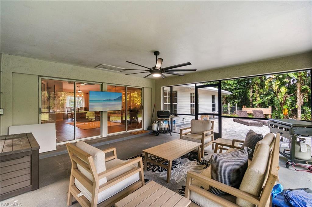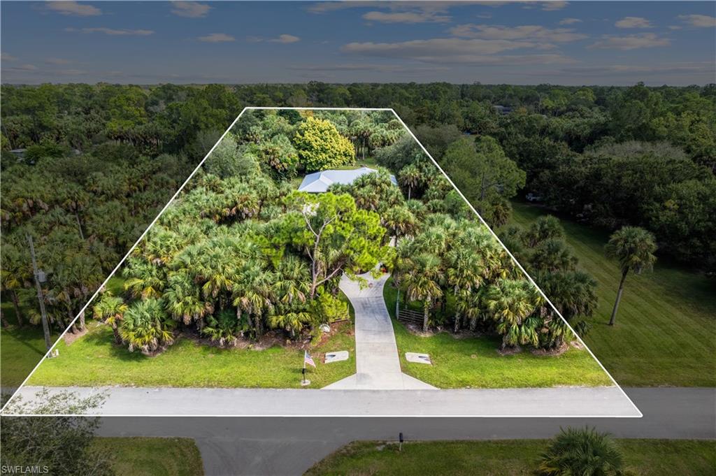 Welcome HOME to your private Golden Gate Estates retreat! Nestled on 2.27 acres of manicured land, this 3bed/2bath gem perfectly blends comfort and modern design. Ideally located in sought-after Golden Gate Estates location, just off Golden Gate Boulevard! Tucked away from the road, this updated property offers extra privacy and curb appeal. Step inside to a welcoming living area featuring vaulted ceilings and a custom feature wall with a built-in electric fireplace and TV (included) - a stunning focal point for both relaxation and entertaining. The open-concept kitchen has been tastefully updated with soft close shaker cabinets, upgraded counters, and stainless steel appliances. Both bathrooms have also been beautifully renovated. Enjoy peace of mind with major recent upgrades to include a NEW METAL ROOF (2024), NEW PEX PLUMBING (2020), and a newer water heater (2019). The home is also equipped with a whole-home Reverse Osmosis System so you can ensure pure water throughout. Additional features include wood plank tile flooring, updated light fixtures, newer interior and exterior paint, newer A/C ductwork, a property fence, a charming shiplap accent wall in the guest bedroom, and a comfortably-sized laundry room with storage space. Relax on the expansive screened-in lanai and enjoy your morning coffee surrounded by nature! This darling home truly delivers all the good vibes; see it today!