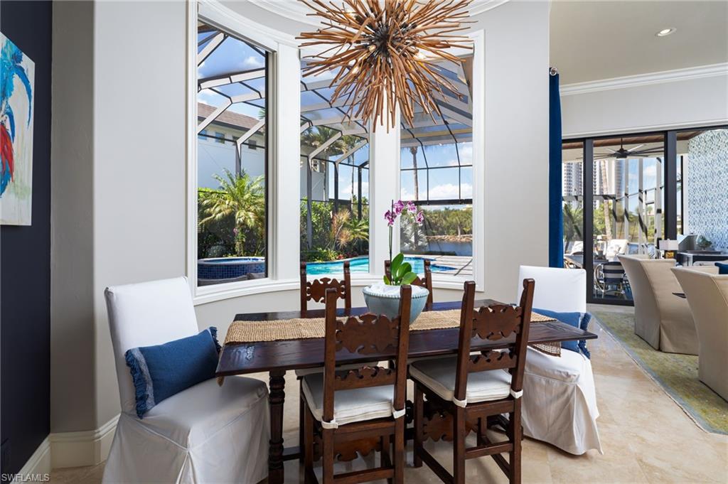 Stunning newly renovated and reimagined waterfront estate home in The Colony Golf and Bay Club! Located on a tranquil cul-de-sac street in the community of Bellagio in The Colony Golf and Bay Club. No expense was spared in the imagination of this home including NEW ROOF 2025, NEW HOT WATER HEATER 2024, NEW CUSTOM ONE OF A KIND LIGHTING FIXTURE in dining room, NEW LIGHTING THROUGHOUT, NEW PLUMBING FIXTURES, NEW COUNTERTOPS, NEW REFURBISHED POOL AND SPA, NEWLY DESIGNED OUTDOOR KITCHEN, TILED 3 CAR GARAGE WITH BUILT IN STORAGE AND EV SETUP, NEW CUSTOM GARAGE DOOR, OUTDOOR LANDSCAPE LIGHTING AND NEW LANDSCAPING And MUCH MORE! Step into this magnificent estate home through custom entry wood doors into the luxurious living room with floor to ceiling custom gas fireplace and spectacular views of the lake, waterfall, and tropical paradise setting with oversized pool and spa. This home is made for fabulous entertaining! Your friends and family will love your covered lanai area with a summer outdoor Viking grill kitchen. Your chef’s gourmet kitchen boasts a center island with sink, custom cabinetry, cabinet front sub zero and wolf appliances, new countertops, breakfast bar, and breakfast room with an amazing view! Plenty of space and in this home with four bedrooms plus a separate den which offers spacious living quarters and privacy for all of your family and guests. The grand owners master suite offers wood flooring, his & her large custom closets, an inviting master bath with jetted tub, dual shower, dual vanities, and separate water closet with bidet. Enjoy paradise while entertaining in your magnificent outdoor lanai with oversized heated pool and spill-over spa and spacious covered dining space along with a view that will "wow" you! You will love what this estate home has to offer including two triple impact window sliders in family room, custom detailed soaring ceilings, crown moldings, custom painting throughout, and custom travertine marble flooring in the main living areas and wood flooring in your guest bedroom suites. Enjoy your tranquil water views with an added bonus of a tropical waterfall on your expansive lake! This home has truly been reimagined with custom features throughout and newly updated and redesigned with an artful eye. The Colony Golf and Bay club offers world class amenities with a 34 acre private beach island with hourly boat transfer to and from the island, enjoy waterfront dining at The Bay Club along with kayaking, pickleball, bocce ball, fitness center with spa, tennis, & 18 hole championship golf course. Skip the waitlist for golf as this home has a FULL GOLF MEMBERSHIP available to purchase for immediate golf access or enjoy the private club with a social sports membership. Don’t miss out on this opportunity for your chance to live in paradise in a one of a kind uniquely designed custom estate home!Make your private showing appt to view this new waterfront estate home! You will be “wowed” once you step in the front door!