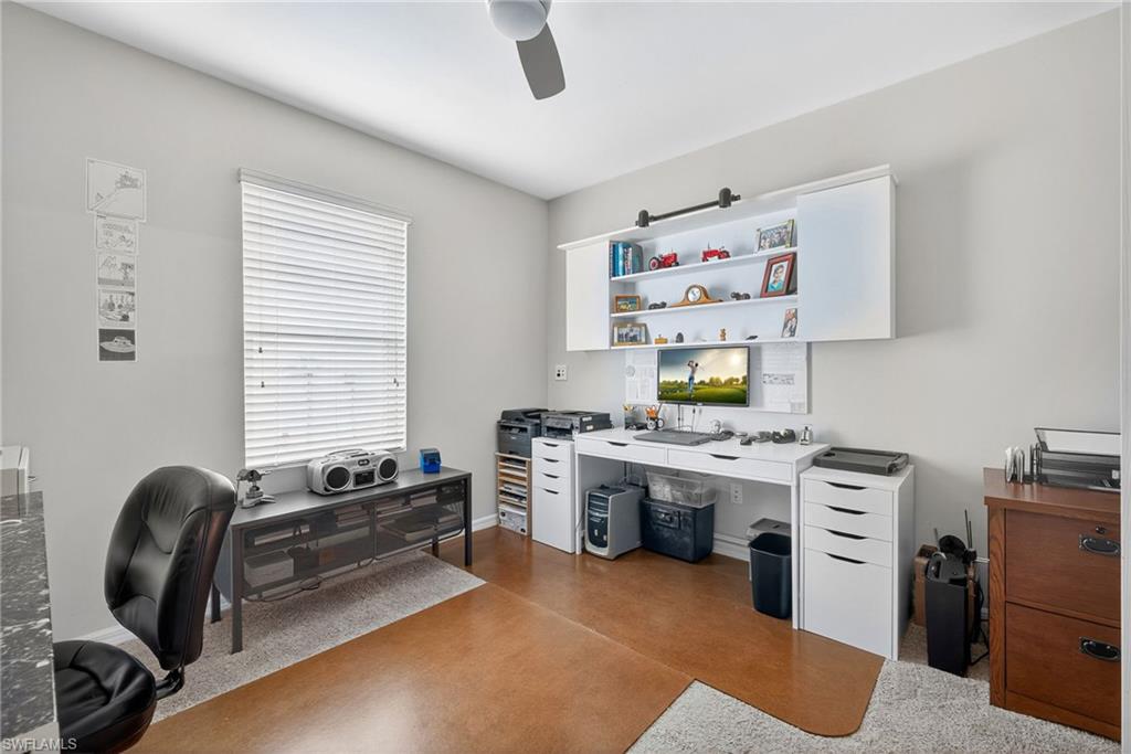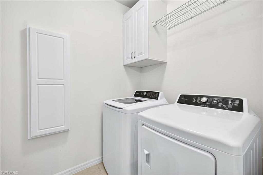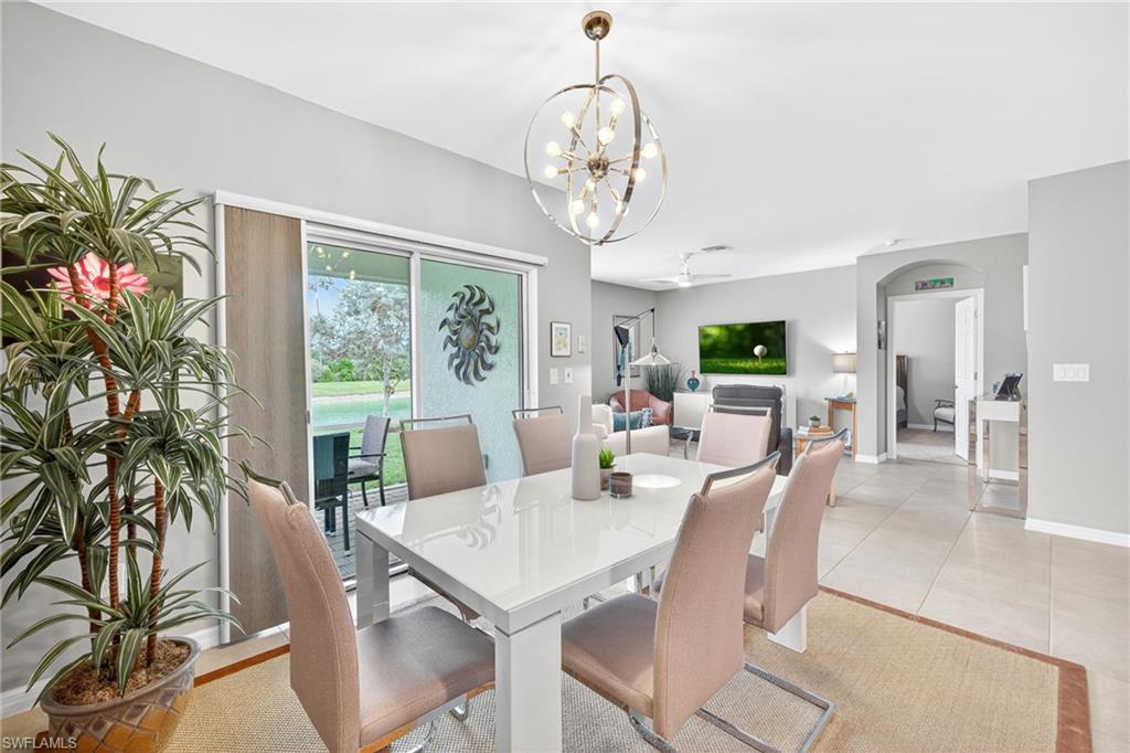 Welcome to this meticulously maintained and move-in ready 4 bedroom, 2-bath lake front home that blends contemporary upgrades with classic touches to create an inviting and stylish living space. The heart of this great room floor plan is the kitchen, the perfect gathering spot. Showcasing a nice size island with a decorative tile design, granite countertops, stylish backsplash and kitchen is equipped with Frigidaire appliances. Owner’s suite is spacious in size, has a walk-in closet, bath has a convenient walk-in shower with seamless door. The 4th bedroom provides a versatile space that can be tailored to any need, whether it’s a home office, media room, or guest retreat. Laundry room is equipped with white Frigidaire washer and dryer, storage cabinet, clothes rod and a built-in ironing station. Interior arches, Florida color palette, stylish light fixtures and ceiling fans throughout the home enhance the aesthetics. The back yard oasis with its screened in lanai is the perfect spot to watch our stunning sunsets! Exterior features include a NEW ROOF just installed with architectural shingles, hurricane shutters and whole house gutter system. Wildwood Preserve is a great location to our beautiful beaches, SW Florida International Airport, YMCA, shopping, dining and entertainment destinations and coming soon the highly anticipated Midtown Bonita a new shopping and restaurant experience. Schedule your showing today and experience paradise for yourself!