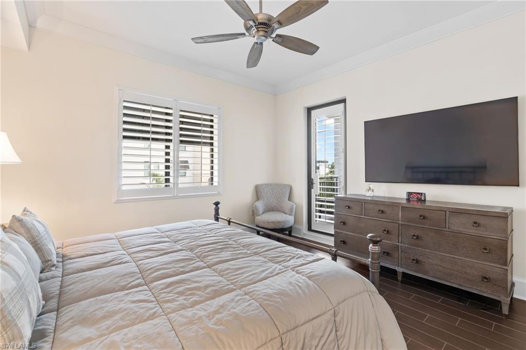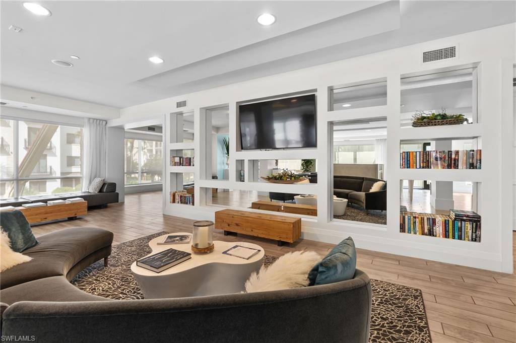 Steps from Naples finest dining, galleries, and Gulf beaches, this elegant Naples Square condo places you in in the center of it all, the heart of the Downtown Design District, this exceptional turnkey-furnished condominium offers a modern take on coastal living. Spanning approximately 1,832 square feet, this two-bedroom plus den, two-and-a-half-bath home showcases refined finishes and a bright, open design. The spacious great room flows effortlessly into a chef-inspired kitchen, with a large island, and entertaining space. Elegant plantation shutters accent every window, adding character and charm. The primary suite provides a private retreat with two custom-designed walk-in closets and a luxurious bathroom featuring dual vanities, a soaking tub, and a separate glass shower. A guest suite with its own private bath ensures comfort and privacy for visitors, while the den can serve as a quiet home office, reading nook, or additional sleeping area. Step outside and experience the best of downtown Naples living—just moments from famous restaurants, boutique shops, art galleries, and the white sandy Gulf beaches. Residents of Naples Square enjoy resort-style amenities, including a sparkling pool and spa within a lush courtyard, a state-of-the-art fitness center, social room, and secure under-building parking with private storage. Perfect for those seeking a full-time Naples home, seasonal, or a high-performing investment property, this residence captures the ultimate blend of luxury, location, and lifestyle. Indulge in the Downtown Naples lifestyle living in this lively walkable/golf cart community!
