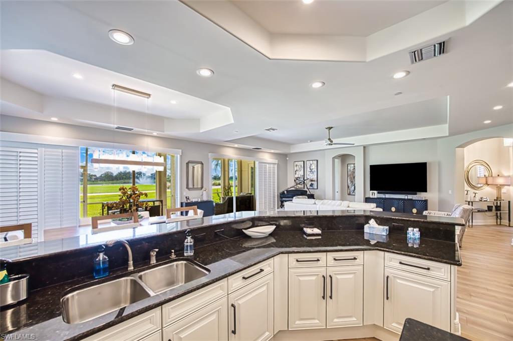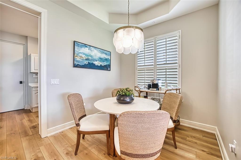Located within the prestigious Avellino Isles Vineyards community is this turnkey, first floor coach home with a private driveway and attached garage. As you walk into the home, you will notice the $100,000+ in high end updates just recently completed, including new floors, stunning light fixtures, updated appliances and kitchen, new water closets, and electric hurricane roll-down shutters. The home features 2 spacious bedrooms, a den, and 2 1/2 bathrooms. The heart of the home is the beautifully updated kitchen featuring stainless steel appliances, quartz countertops, a breakfast bar, and a separate dining area. The great room opens effortlessly into the screened lanai overlooking the Vineyards golf course, arguably one of the best views in the entire community. The primary suite offers high ceilings, an oversized walk-in closet, and a luxurious master bath featuring dual sinks and a separate tub and shower. Right across the street you will find the community’s exceptional amenities, including the Avellino Isles clubhouse, exercise facility, and resort-style infinity pool and spa. The expansive pool deck, equipped with grills and a bar area, is perfect for hosting gatherings and is included in your HOA fees. This stunningly remodeled home has all the bells and whistles and is in an ideal location within this sought-after community. Additionally, Vineyards offers optional golf and social memberships, including their newly redesigned 18-hole golf courses, resort style pools, clubhouse, restaurant/bar, and award winning exercise and spa.