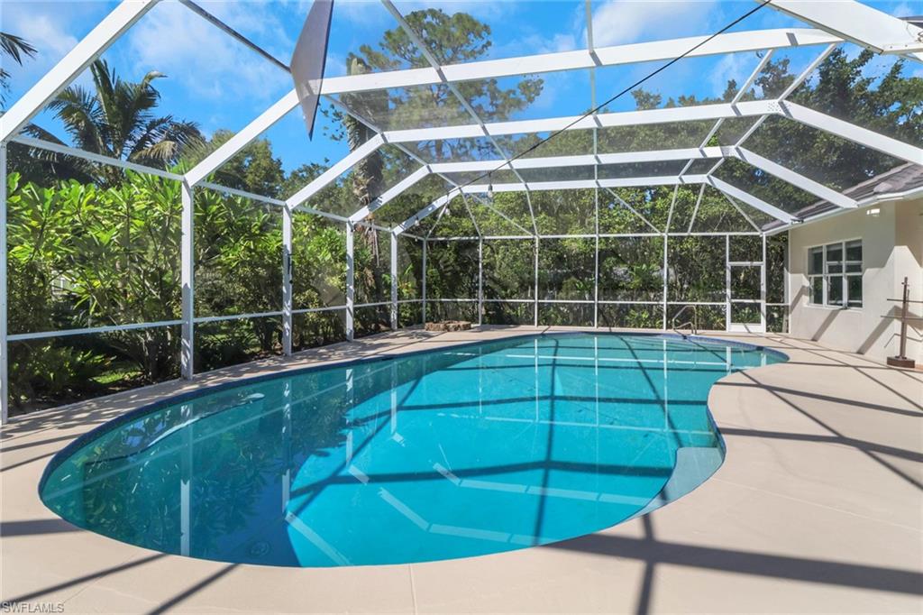 Best Buy in Collier Woods! Spacious 3 bedroom + den, 3 bath home on 2.34 fully fenced acres with a gated entrance and desirable southern exposure. The expansive lanai and oversized pool provide an ideal setting for entertaining or relaxing outdoors. Surrounded by lush landscaping, the property features garden beds and an array of fruit trees: Lychee, Orange, Mango, Avocado, Florida Cherry, and Grapefruit. This home offers endless potential to update and personalize to your taste while enjoying the peace and privacy of estate living. Conveniently located west of Collier Blvd, just 6 miles from Naples’ sugar-sand beaches and minutes from shopping and dining. Guest house can be built. Horses and animals welcome!
