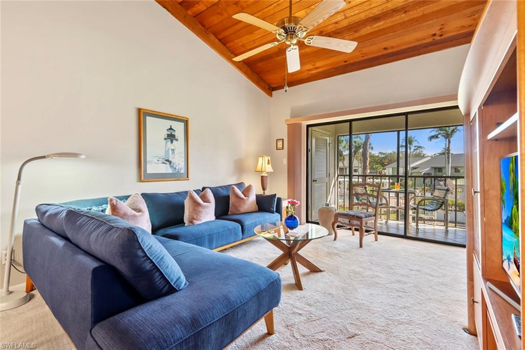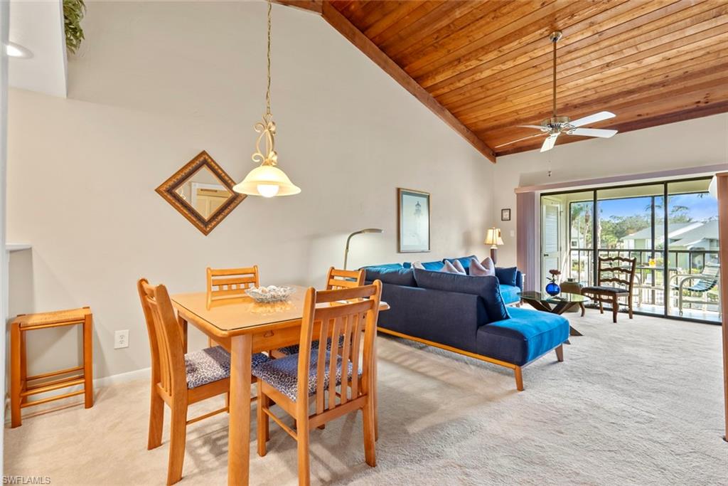 This gorgeous 2nd floor condo features sliding glass doors onto a lanai with a lovely view of the pool and the lake, has a spacious kitchen with stainless appliances, an open concept living space and vaulted ceilings. This 2 bedroom 2 bath condo is bright, spacious, quiet and is in move in condition. Enjoy our Naples outdoor lifestyle while having a cocktail on the lanai or stroll out your front door to the pool. Owners enjoy carport parking and a beautiful boutique community with a well kept pool, a picturesque walking path along the lake with lots of green space, miles of biking possibilities and tennis courts! Also a short drive to local amenities, and to Downtown Naples, with sugar white sandy beaches, wonderful dining and shopping both on 3rd Street and 5th Avenue South. Kings Lake is also a short distance from Naples Botanical Gardens, Naples Zoo, US Open Pickleball Courts, Bayview Park, Celebration Park and many other wonderful offerings throughout Naples.