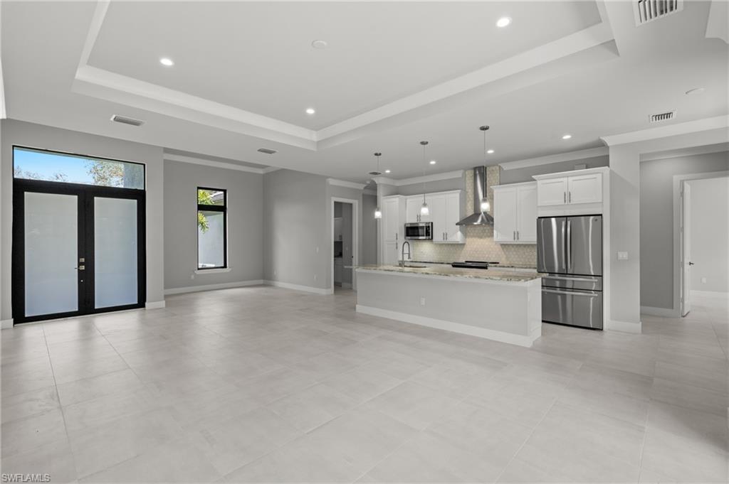 Connected to City Water! Discover modern luxury and privacy in this brand-new custom home on 2.65 acres in the highly sought-after Golden Gate Estates. Thoughtfully designed with upscale finishes and open-concept living, this residence blends style, comfort, and functionality. Step through the grand entry and into a bright, elegant living space highlighted by soaring ceilings, oversized windows, and sleek porcelain floors. The heart of the home is the impressive chef’s kitchen featuring LG Profile stainless steel appliances, a large island, and wood semi-custom cabinetry perfect for both everyday living and entertaining. This beautifully crafted home offers 4 spacious bedrooms and 3 designer bathrooms, including a luxurious owner’s suite with a spa-style bath, dual vanities, glass walk-in shower, soaking tub, and a spacious walk-in closet. New custom closets have been added in every bedroom for convenience and organization. Enjoy Florida living outdoors on the screened-in lanai with brand-new panoramic screens and peaceful views of your sprawling acreage ideal for a future pool, guest house, or workshop. A two-car garage adds extra storage and security. Located in one of Naples’ fastest-growing areas with no HOA restrictions, this estate offers the freedom and lifestyle you've been searching for luxury meets land and lifestyle.