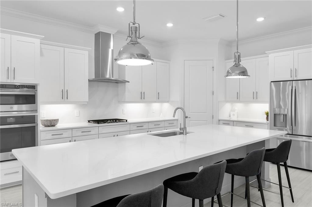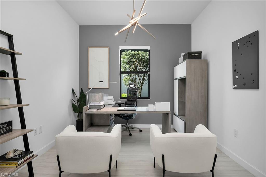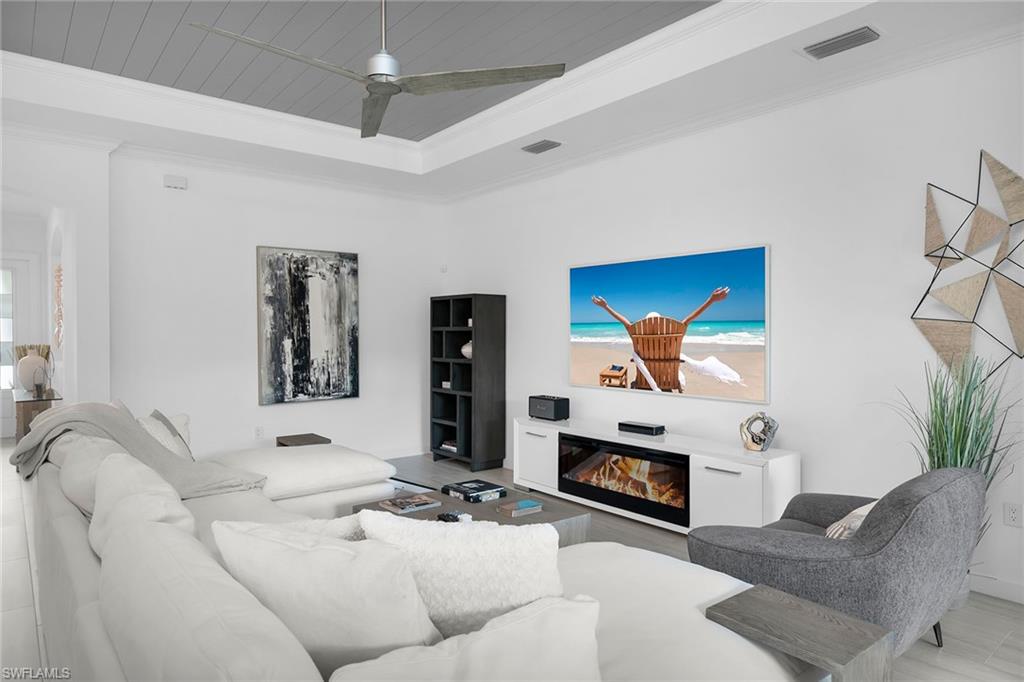 This stunning 2022-built smart home showcases contemporary architecture and elegant designer furnishings that complement its modern aesthetic. Sleek lines and high-end finishes define the luxurious living spaces, while the open-concept floor plan seamlessly connects the living, dining, and kitchen areas complete with upgraded appliances, automatic window shades and Samsung Frame TVs in multiple rooms, offering convenience and modern style. Go outside to your private outdoor oasis featuring a sparkling pool, spa, outdoor kitchen and lush tropical landscaping ideal for enjoying Florida sunshine. Additional features include hurricane-resistant electric storm screens, a whole-house generator and a home warranty for peace of mind. The garage features durable epoxy floors, built-in storage shelving and an electric vehicle charging setup for convenient at-home charging. Fiddler's Creek is close to Marco Island Executive Airport, beaches, shopping, restaurants and boating, and has quick access to Naples Fifth Avenue and Naples Airport.