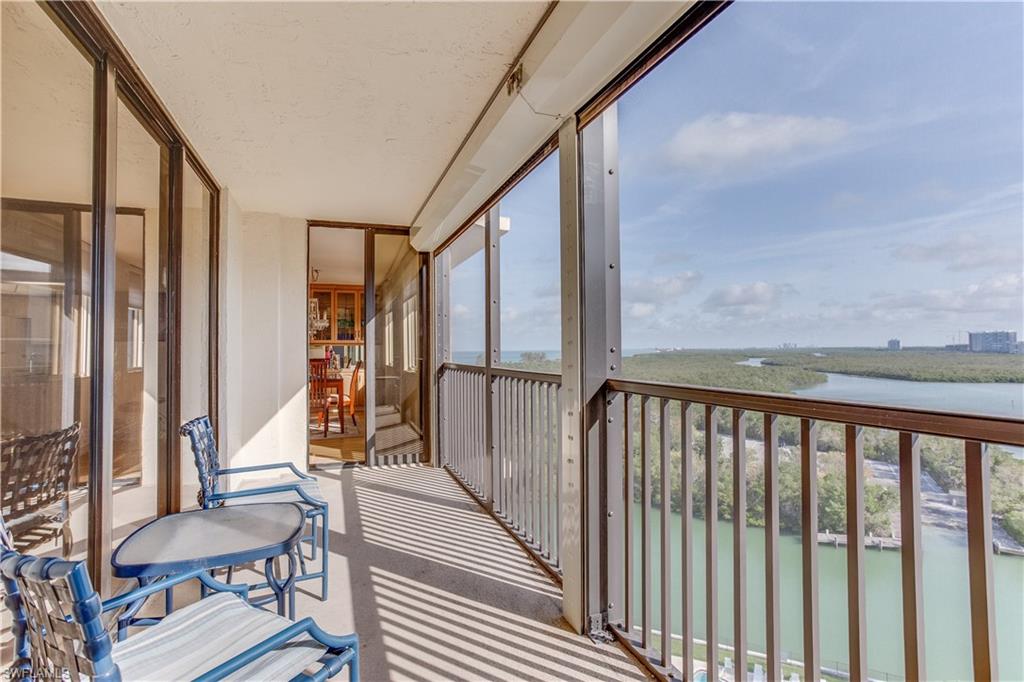Bargain basement pricing! Close by the end of 2025. Priced for immediate sale to close in thirty days. One of the best views in the entire Bluebill Peninsula! You can see the Gulf of America, Turkey Bay, as well as condos and homes in Vanderbilt Beach! Quick walk to Wiggins State Park beach. This two bedroom and 2 bath end unit is being sold partially furnished and is ready for immediate occupancy or rentals. Electric storm shutters have been installed. Unit has a prime carport parking space and storage locker. Potential to lease a boat slip and kayak storage. Close to Mercato, great restaurants, and shopping! Truly one of the best places to live in Naples! An opportunity like this comes along once in a lifetime!!