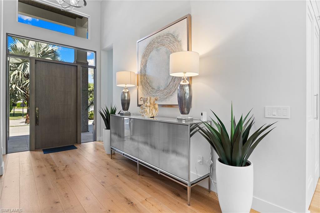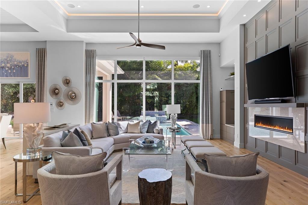 This exquisite 2020 custom-built residence in the heart of Coquina Sands offers 3,730 square feet of thoughtfully designed living space, blending modern elegance with timeless comfort. In one of Naples desired central locations, this home is just a few blocks from the beach, minutes to the new Four Seasons Resort, and moments from fine dining and shops of 5th Avenue South. The home features four spacious en-suite bedrooms plus a den, all centered around an open-concept floor plan that welcomes abundant natural light and effortless flow. Soaring 12-foot ceilings elevate every living space, from the family room to the formal sitting area, separated by a stunning glass-enclosed, temperature-controlled 80-bottle wine cellar. An entertainer’s kitchen offers a double gas range, dual ovens and a hidden butler’s kitchen for seamless hosting. Custom millwork, built-ins and walk-in closets enhance the home’s refined design, while the primary suite serves as a serene retreat with dual vanities and a large walk-in shower. The outdoor living space is equally impressive, featuring a covered lanai with gas grill and sink, a cozy fireplace and a luxurious custom spa. With desired southern exposure, the backyard enjoys sunlight all day, creating a private oasis in the heart of Naples.