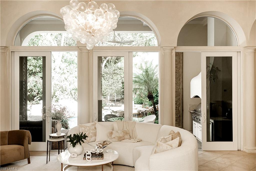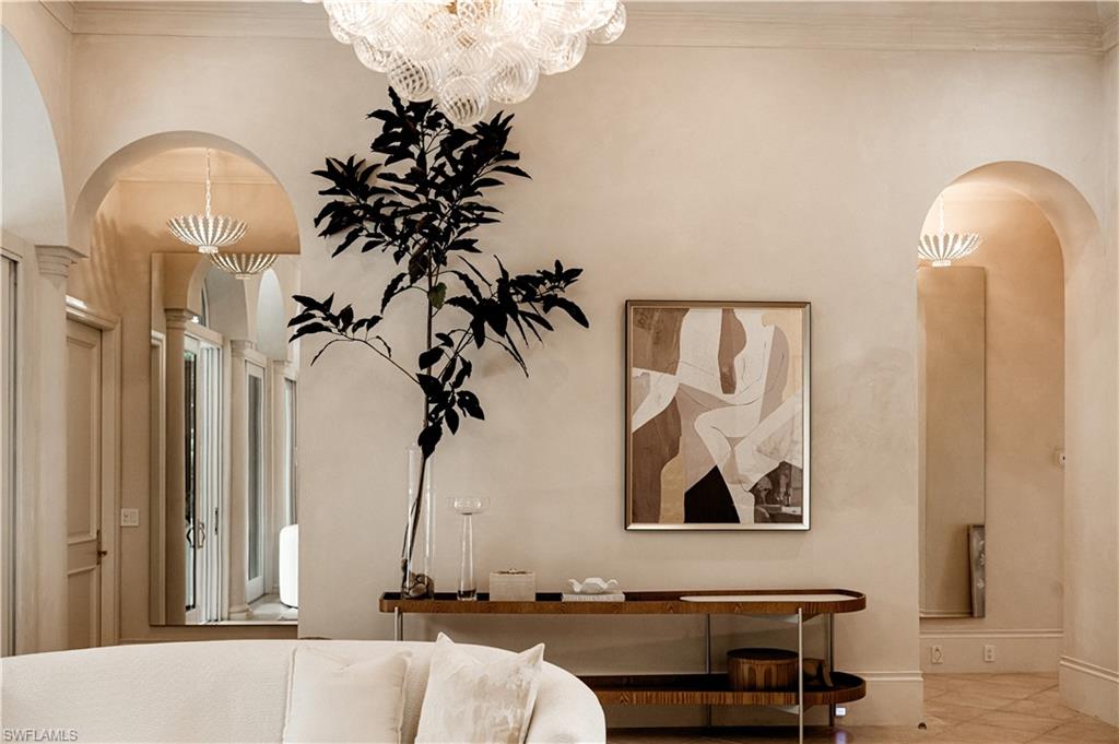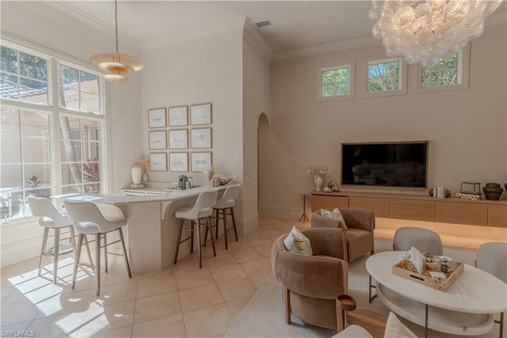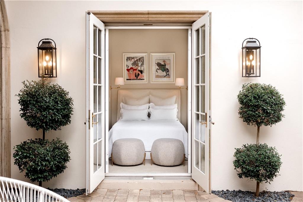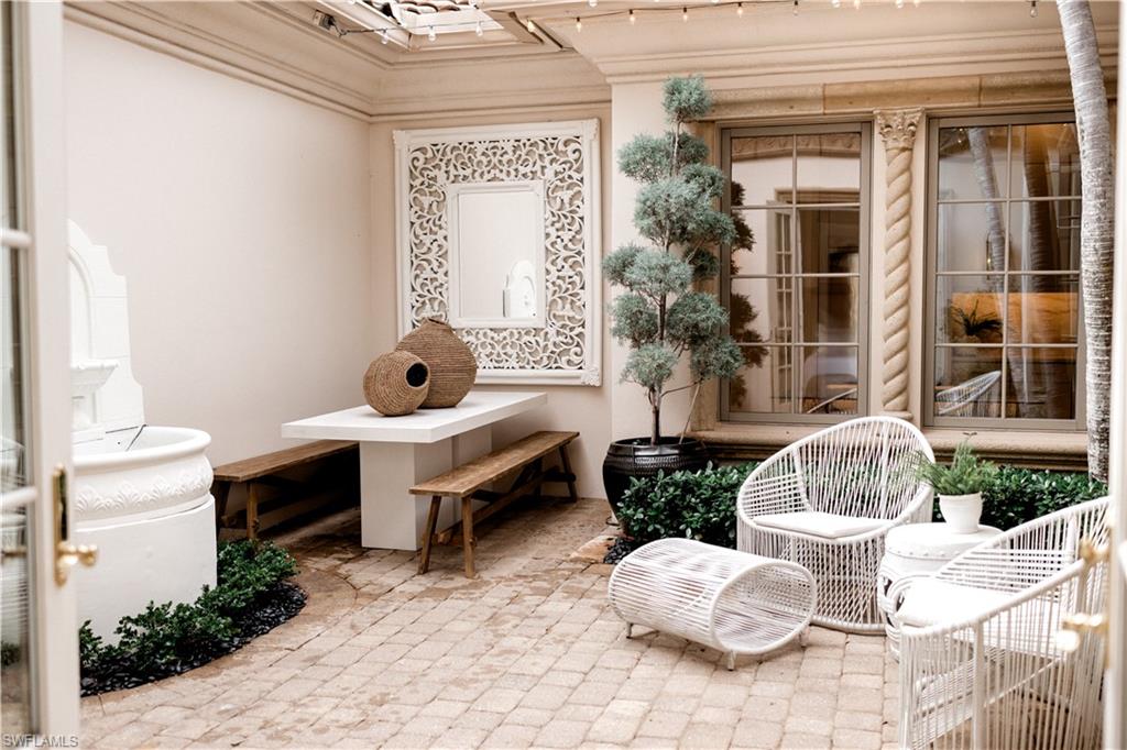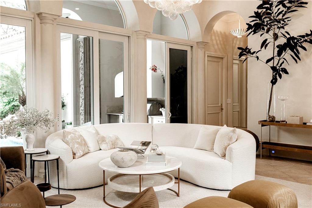 Welcome to this extraordinary, fully renovated villa reimagined by a California superstar designer—an architectural statement that blends timeless Mediterranean elegance with modern luxury. Behind the private gated courtyard, every inch reveals bespoke artistry: one-of-a-kind furnishings, custom millwork, and imported Taj Mahal marble surfaces that exude understated opulence. The light-filled open layout flows through soaring ceilings with intricate crown moldings, arched passageways, and walls of glass that bring the outdoors in. The chef’s kitchen is a true centerpiece, featuring hand-crafted cabinetry, integrated professional appliances, and a waterfall Taj Mahal Quartzite island that feels more like sculpture than stone. Entertain effortlessly at the custom-designed Dianna Royal marble bar—crafted exclusively for this home. The primary suite is a private sanctuary, offering dual vanities, a spa-inspired soaking tub, and a marble-clad walk-in shower. Step outside to your private resort oasis with a covered summer kitchen, a glimmering pool and spa, and lush tropical landscaping that envelops you in serenity. Every element—from lighting and furnishings to flooring and finishes—was curated for this single residence and cannot be replicated. This home stands apart in both design pedigree and execution, commanding a premium over neighboring properties. Experience the pinnacle of luxury living in Mediterra, where world-class amenities meet the artistry of custom design.