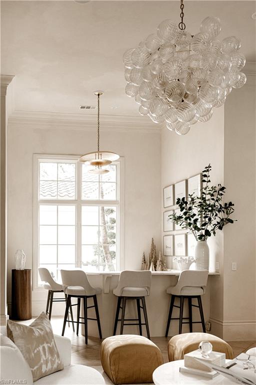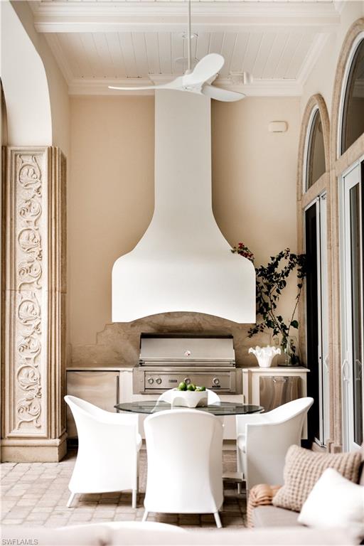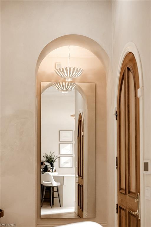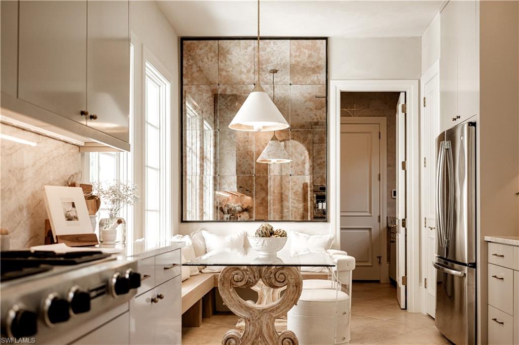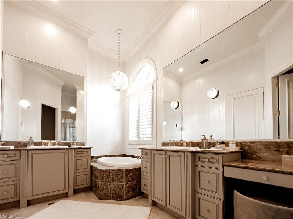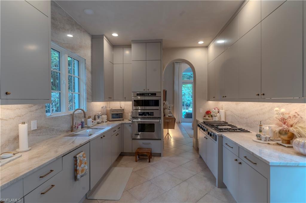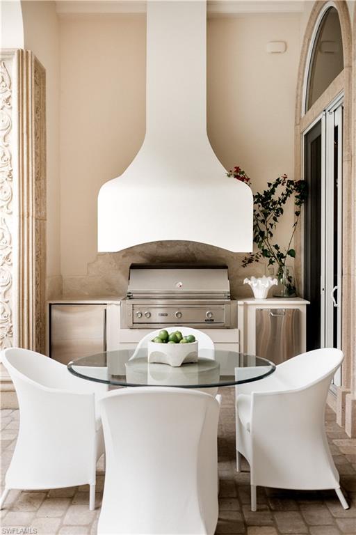 Welcome to this extraordinary, fully renovated villa reimagined by a California superstar designer—an architectural statement that blends timeless Mediterranean elegance with modern luxury. Behind the private gated courtyard, every inch reveals bespoke artistry: one-of-a-kind furnishings, custom millwork, and imported Taj Mahal marble surfaces that exude understated opulence. The light-filled open layout flows through soaring ceilings with intricate crown moldings, arched passageways, and walls of glass that bring the outdoors in. The chef’s kitchen is a true centerpiece, featuring hand-crafted cabinetry, integrated professional appliances, and a waterfall Taj Mahal Quartzite island that feels more like sculpture than stone. Entertain effortlessly at the custom-designed Dianna Royal marble bar—crafted exclusively for this home. The primary suite is a private sanctuary, offering dual vanities, a spa-inspired soaking tub, and a marble-clad walk-in shower. Step outside to your private resort oasis with a covered summer kitchen, a glimmering pool and spa, and lush tropical landscaping that envelops you in serenity. Every element—from lighting and furnishings to flooring and finishes—was curated for this single residence and cannot be replicated. This home stands apart in both design pedigree and execution, commanding a premium over neighboring properties. Experience the pinnacle of luxury living in Mediterra, where world-class amenities meet the artistry of custom design.